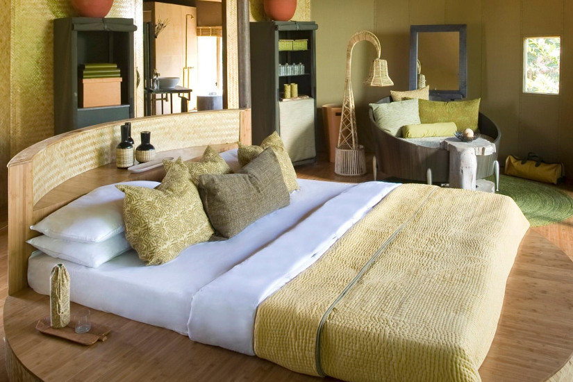 В отеле 18 комфортабельных номеров (коттеджей) категории Suite. Внутренний дизайн экологического стиля декорирован в местной манере (натуральный текстиль, отделка из кожи и резного металла bastar, деревянная мебель ручной работы, полы из прессованного бамбука). Из панорамных окон и террас открываются виды на реку Banjaar и на леса Национального природного парка Кана. Для гостей по прибытии: прохладительные напитки. По время проживания: услуги дворецкого, домашняя выпечка и напитки каждое утро.