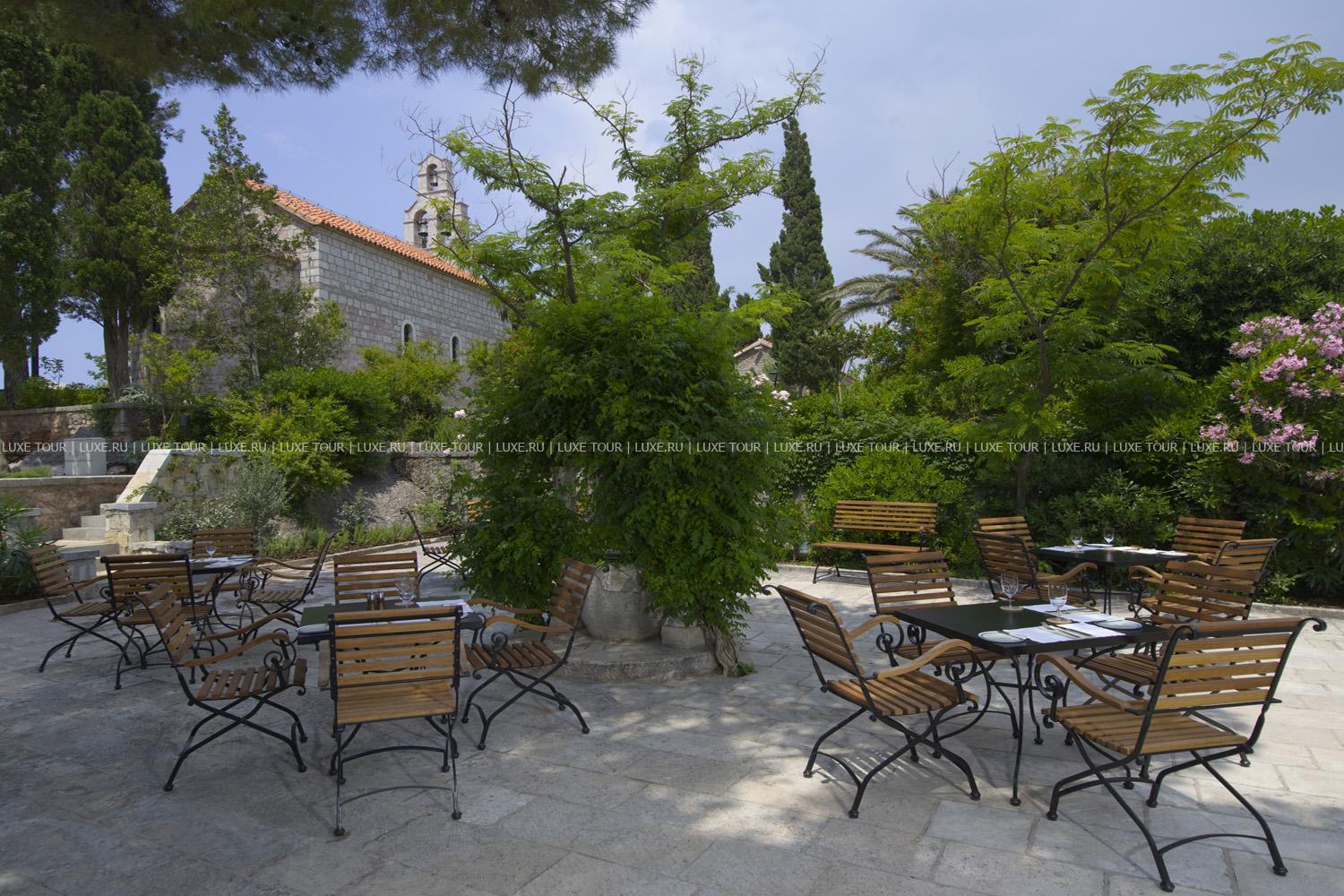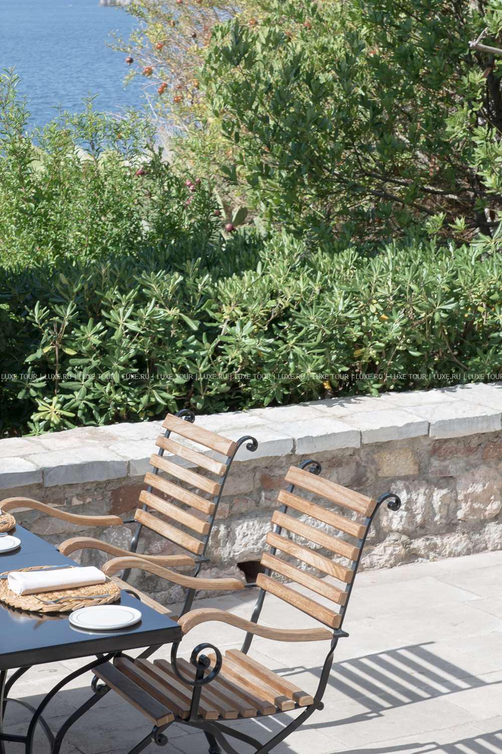 - В тени деревьев, увитых глициниями, расположилась Loggia, где можно не только позавтракать и пообедать, но и отдохнуть на удобных шезлонгах и кушетках.