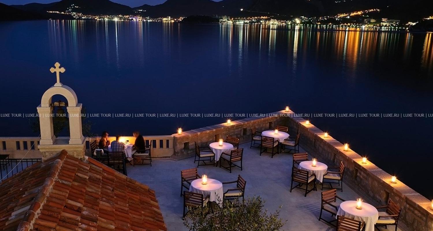 - В здании Villa Miločer на первом этаже находится Dining Room, всего семь столиков у камина, здесь гости могут отдохнуть в камерной обстановке, ресторан открыт с утра, из окон открывается прекрасный вид на пляж Miločer.