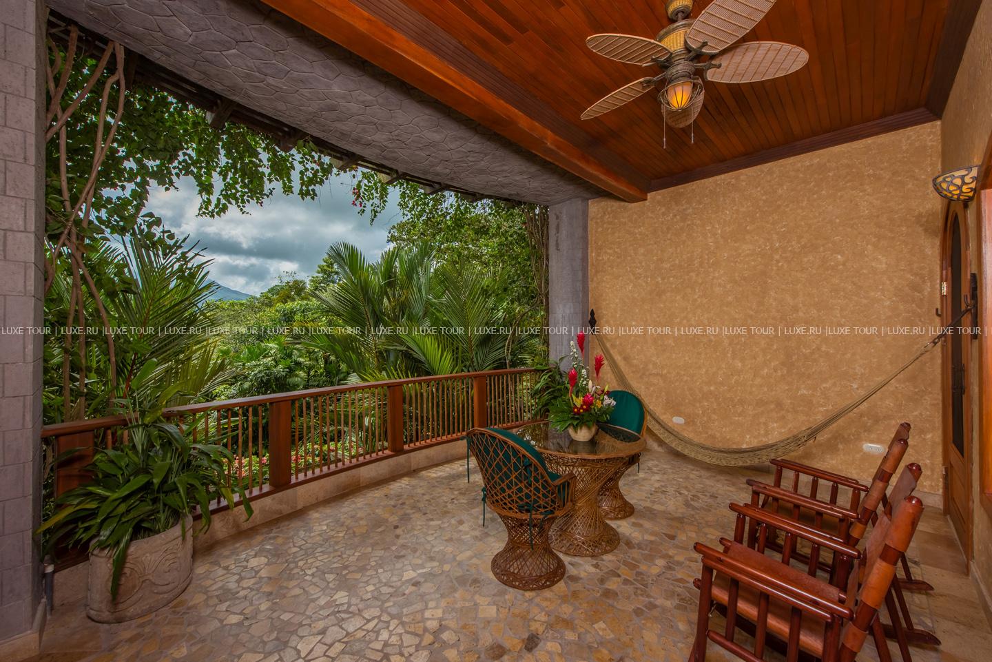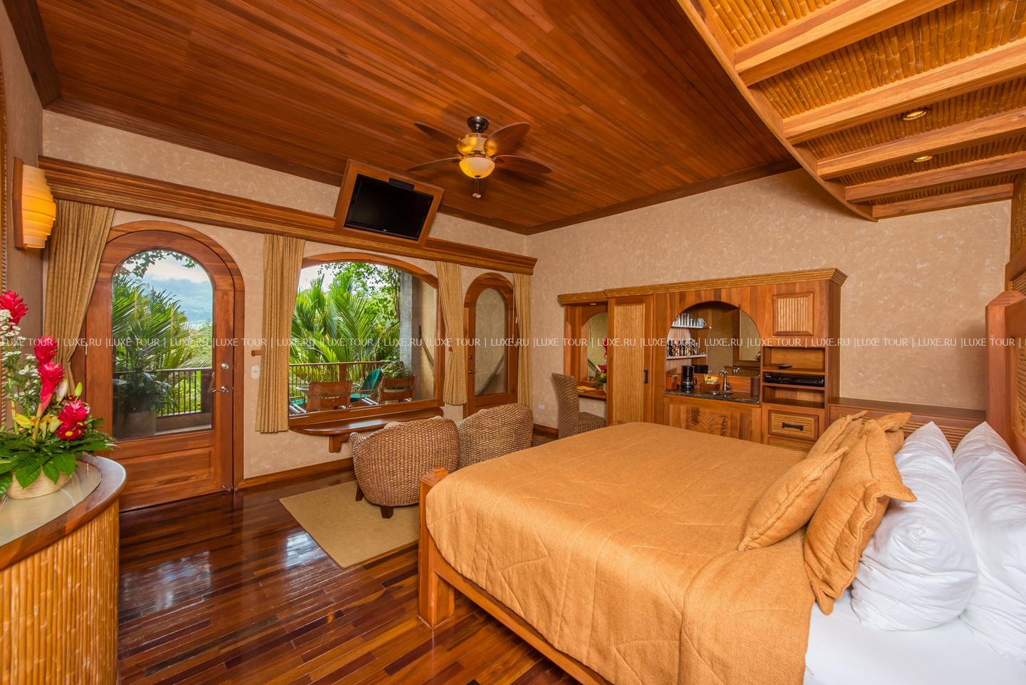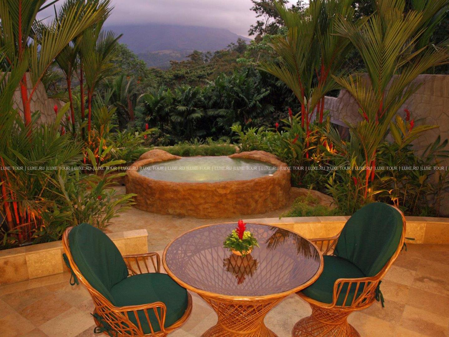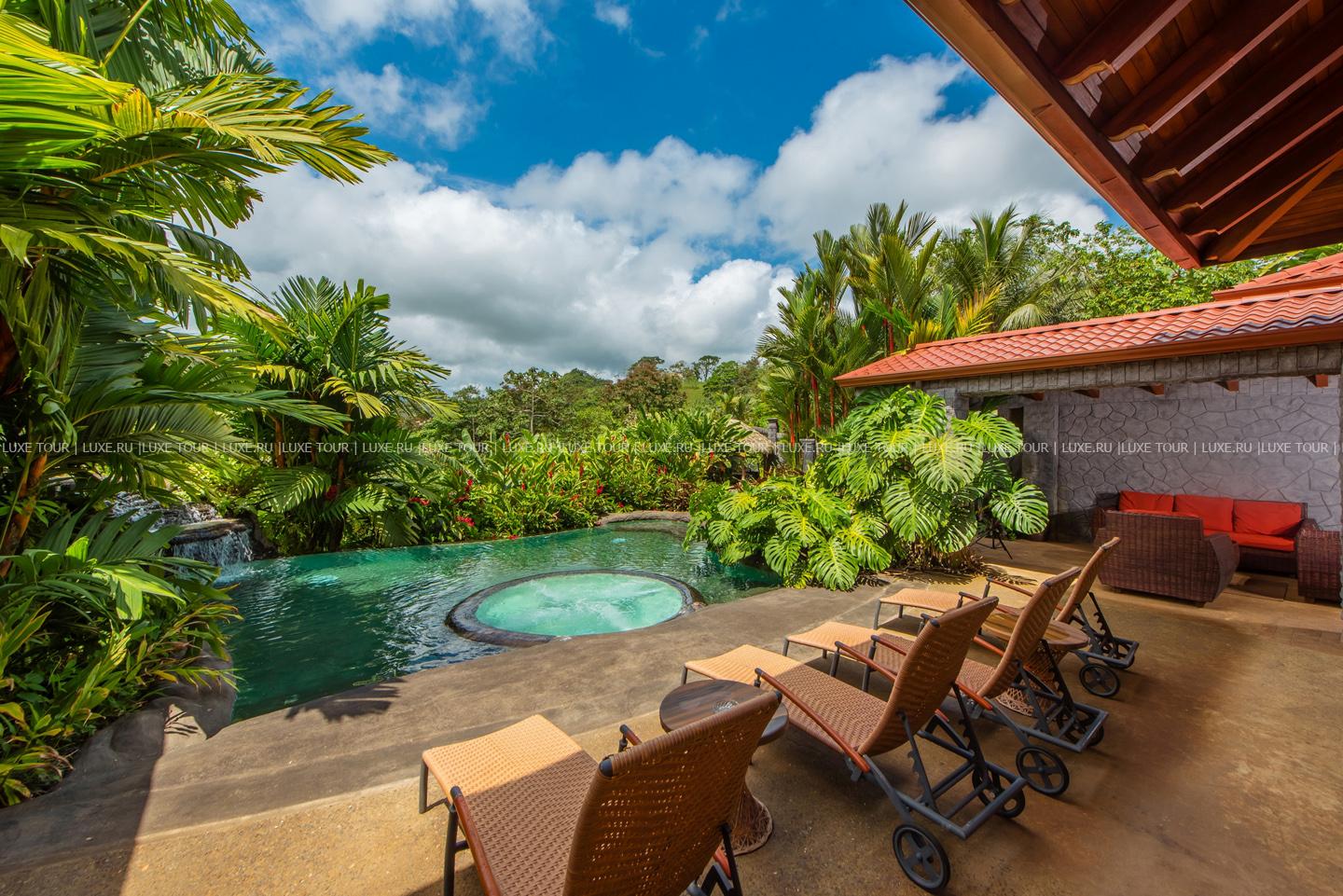 Отель располагает термальным аква-комплексом, состоящим из трех частей и включающим 30 открытых бассейнов свободной формы с каскадами, горками и с температурой 24-39,4 градусов по Цельсию, расположенных на разных уровнях (также есть отдельная открытая джакузи с подогревом). Первая часть комплекса — Las Lagunas окружена садом площадью 2 акра и состоит из 12 бассейнов (температура воды — 28-39,4 градуса по Цельсию), многоуровневых открытых и крытых террас. 4 бассейна заполняются водой непосредственно из горячих термальных источников с высоким уровнем минеральных солей; 8 бассейнов — с подогревом и хлорированы. Вторая часть — Perdido Springs («Спрятанные источники») представляет собой 7 объединенных лагунообразных бассейнов, расположенных внутри лесного каньона, в 100 м от самого нижнего уровня Las Lagunas. Perdido Springs включает бассейны с водами из горячих и холодных термальных источников. Температура бассейнов — 24,4-37 градусов по Цельсию. Ко второй части аква-комплекса ведет живописная тропа со 150 видами цветущей геликонии, виноградными кустарниками и дождевыми деревьями. Осенью 2009 года открылась третья часть аква-комплекса, расположенная в долине, с видом на реку Arenal River, — включающая 12 бассейнов и отдельную зону для плаванья с горячей термальной водой и насыпным пляжем.