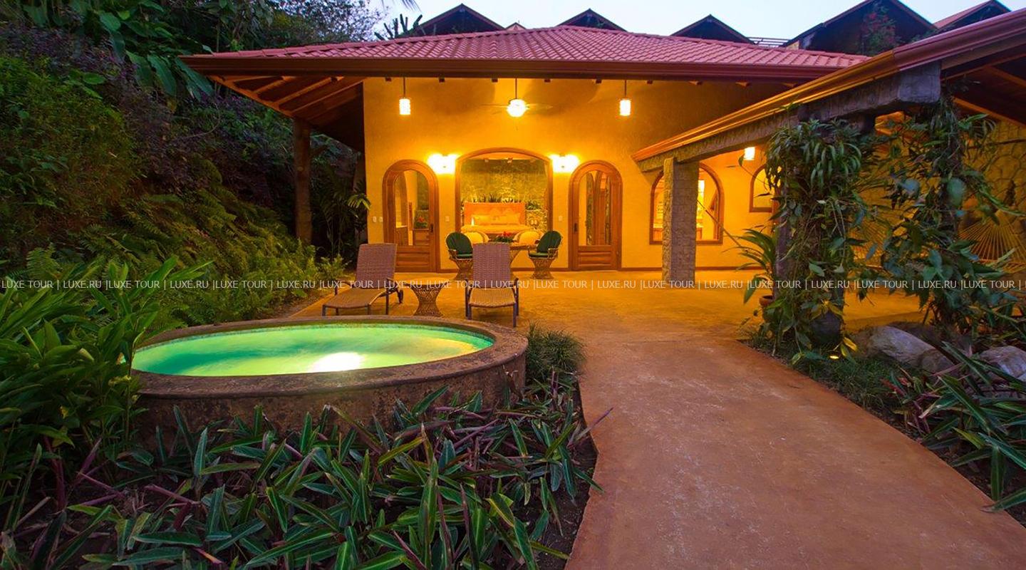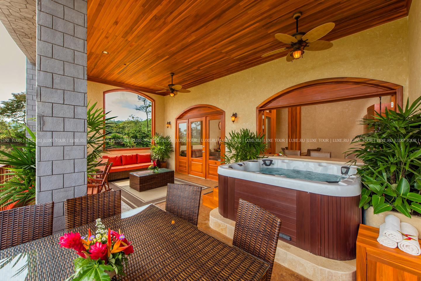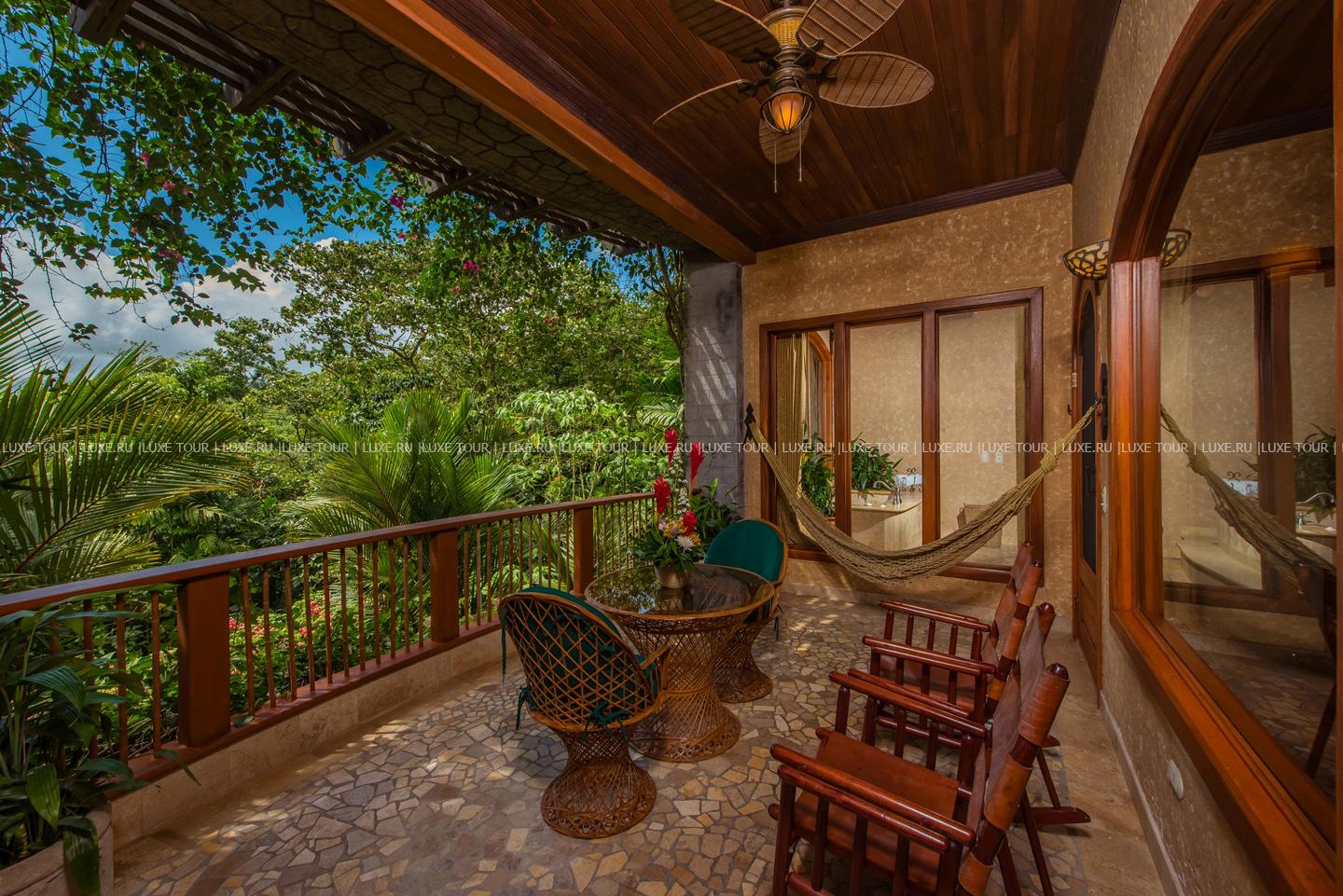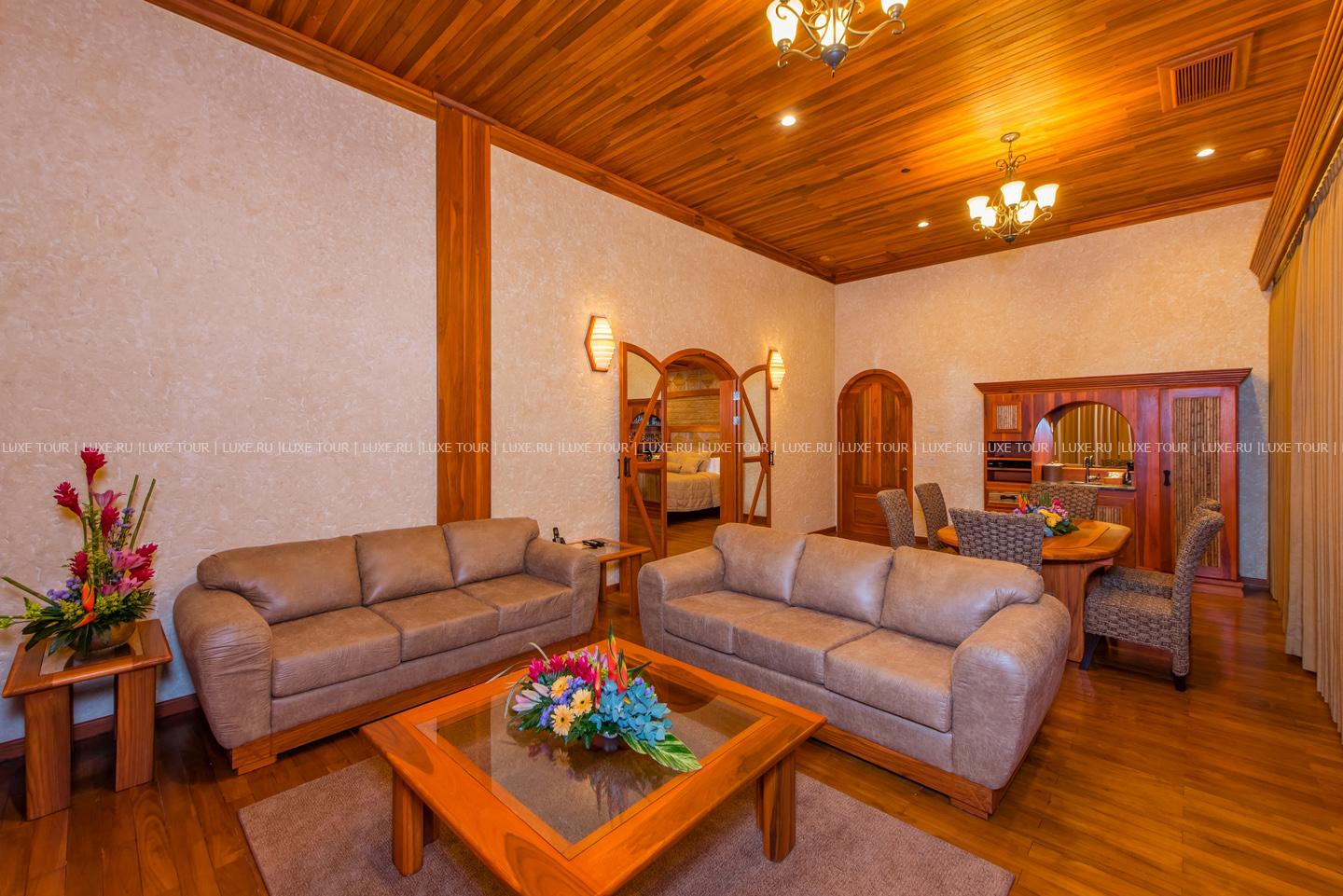 Отель располагает термальным аква-комплексом, состоящим из трех частей и включающим 30 открытых бассейнов свободной формы с каскадами, горками и с температурой 24-39,4 градусов по Цельсию, расположенных на разных уровнях (также есть отдельная открытая джакузи с подогревом). Первая часть комплекса — Las Lagunas окружена садом площадью 2 акра и состоит из 12 бассейнов (температура воды — 28-39,4 градуса по Цельсию), многоуровневых открытых и крытых террас. 4 бассейна заполняются водой непосредственно из горячих термальных источников с высоким уровнем минеральных солей; 8 бассейнов — с подогревом и хлорированы. Вторая часть — Perdido Springs («Спрятанные источники») представляет собой 7 объединенных лагунообразных бассейнов, расположенных внутри лесного каньона, в 100 м от самого нижнего уровня Las Lagunas. Perdido Springs включает бассейны с водами из горячих и холодных термальных источников. Температура бассейнов — 24,4-37 градусов по Цельсию. Ко второй части аква-комплекса ведет живописная тропа со 150 видами цветущей геликонии, виноградными кустарниками и дождевыми деревьями. Осенью 2009 года открылась третья часть аква-комплекса, расположенная в долине, с видом на реку Arenal River, — включающая 12 бассейнов и отдельную зону для плаванья с горячей термальной водой и насыпным пляжем.