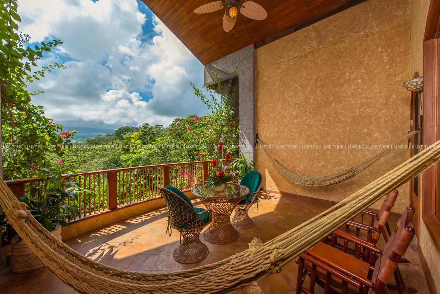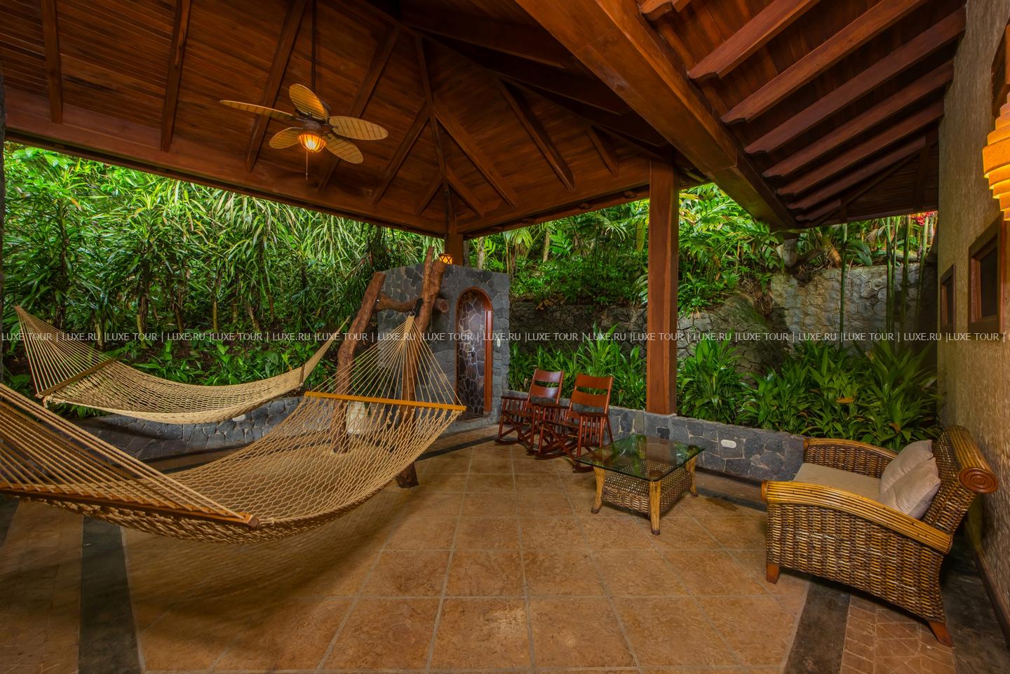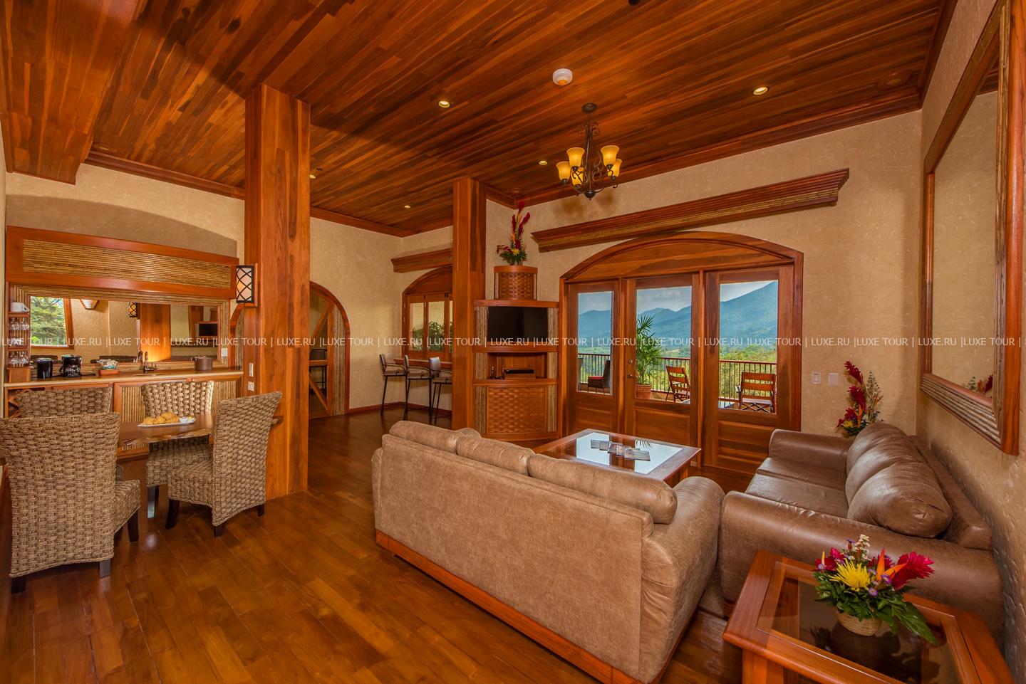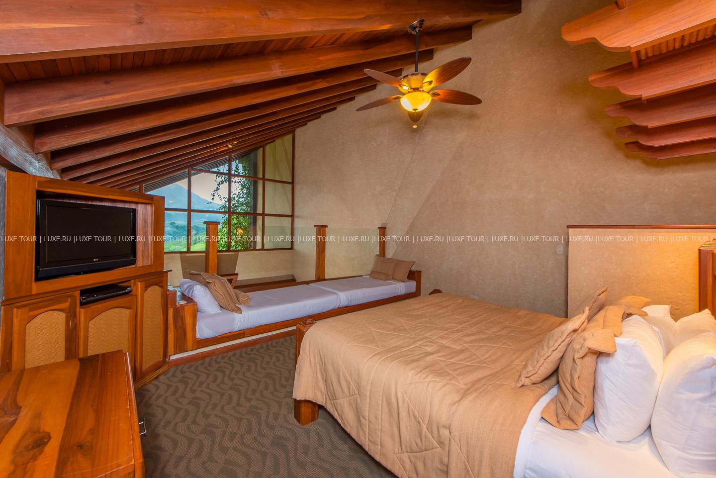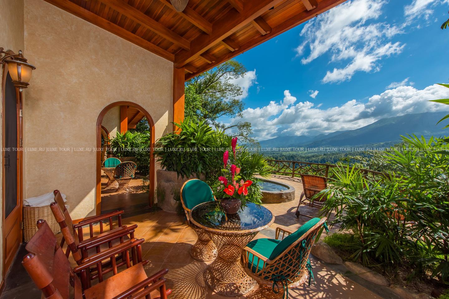 Отель располагает термальным аква-комплексом, состоящим из трех частей и включающим 30 открытых бассейнов свободной формы с каскадами, горками и с температурой 24-39,4 градусов по Цельсию, расположенных на разных уровнях (также есть отдельная открытая джакузи с подогревом). Первая часть комплекса — Las Lagunas окружена садом площадью 2 акра и состоит из 12 бассейнов (температура воды — 28-39,4 градуса по Цельсию), многоуровневых открытых и крытых террас. 4 бассейна заполняются водой непосредственно из горячих термальных источников с высоким уровнем минеральных солей; 8 бассейнов — с подогревом и хлорированы. Вторая часть — Perdido Springs («Спрятанные источники») представляет собой 7 объединенных лагунообразных бассейнов, расположенных внутри лесного каньона, в 100 м от самого нижнего уровня Las Lagunas. Perdido Springs включает бассейны с водами из горячих и холодных термальных источников. Температура бассейнов — 24,4-37 градусов по Цельсию. Ко второй части аква-комплекса ведет живописная тропа со 150 видами цветущей геликонии, виноградными кустарниками и дождевыми деревьями. Осенью 2009 года открылась третья часть аква-комплекса, расположенная в долине, с видом на реку Arenal River, — включающая 12 бассейнов и отдельную зону для плаванья с горячей термальной водой и насыпным пляжем.