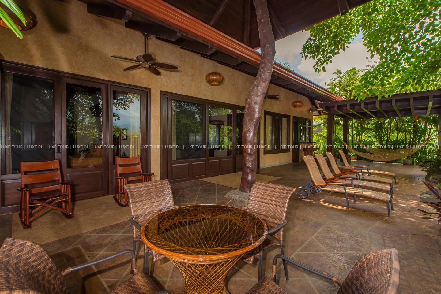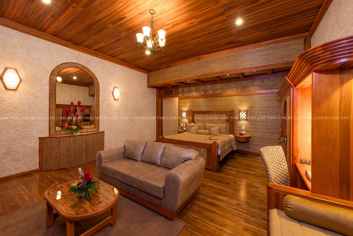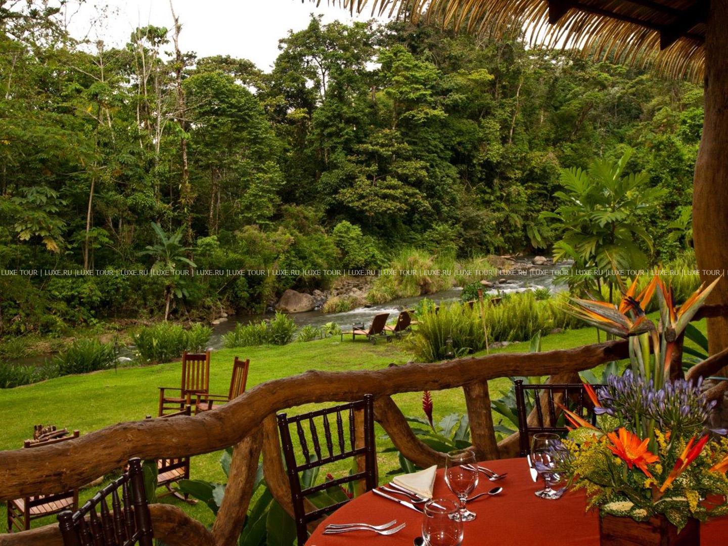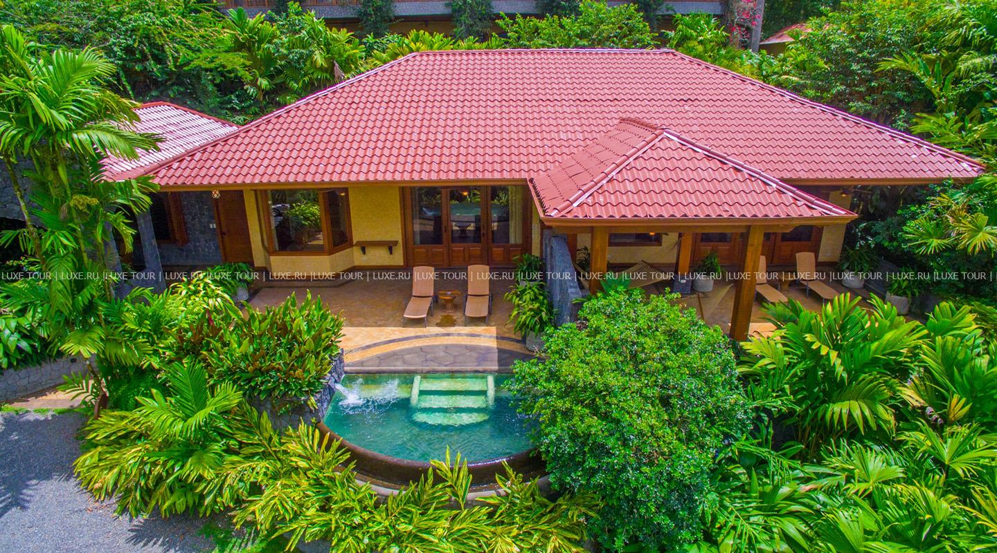 Отель располагает термальным аква-комплексом, состоящим из трех частей и включающим 30 открытых бассейнов свободной формы с каскадами, горками и с температурой 24-39,4 градусов по Цельсию, расположенных на разных уровнях (также есть отдельная открытая джакузи с подогревом). Первая часть комплекса — Las Lagunas окружена садом площадью 2 акра и состоит из 12 бассейнов (температура воды — 28-39,4 градуса по Цельсию), многоуровневых открытых и крытых террас. 4 бассейна заполняются водой непосредственно из горячих термальных источников с высоким уровнем минеральных солей; 8 бассейнов — с подогревом и хлорированы. Вторая часть — Perdido Springs («Спрятанные источники») представляет собой 7 объединенных лагунообразных бассейнов, расположенных внутри лесного каньона, в 100 м от самого нижнего уровня Las Lagunas. Perdido Springs включает бассейны с водами из горячих и холодных термальных источников. Температура бассейнов — 24,4-37 градусов по Цельсию. Ко второй части аква-комплекса ведет живописная тропа со 150 видами цветущей геликонии, виноградными кустарниками и дождевыми деревьями. Осенью 2009 года открылась третья часть аква-комплекса, расположенная в долине, с видом на реку Arenal River, — включающая 12 бассейнов и отдельную зону для плаванья с горячей термальной водой и насыпным пляжем.