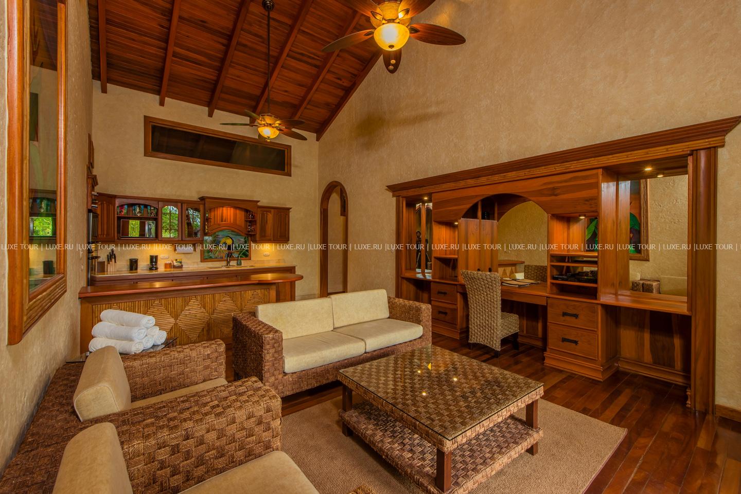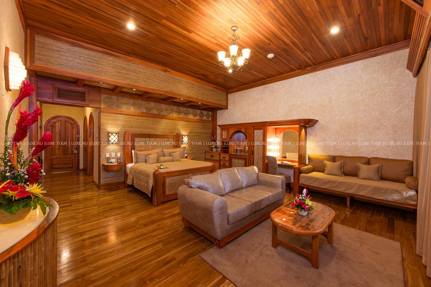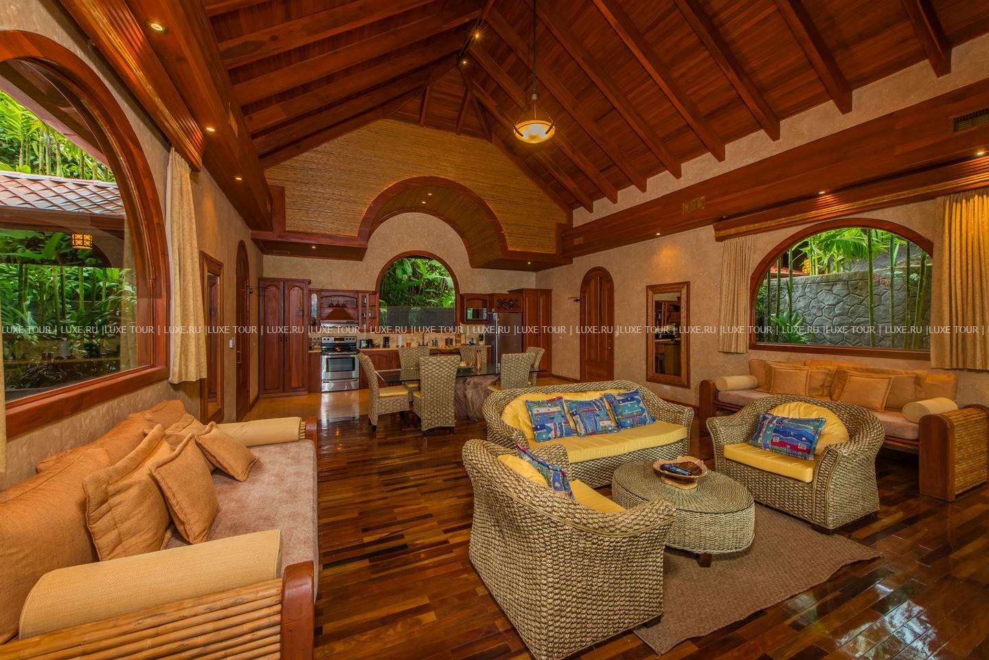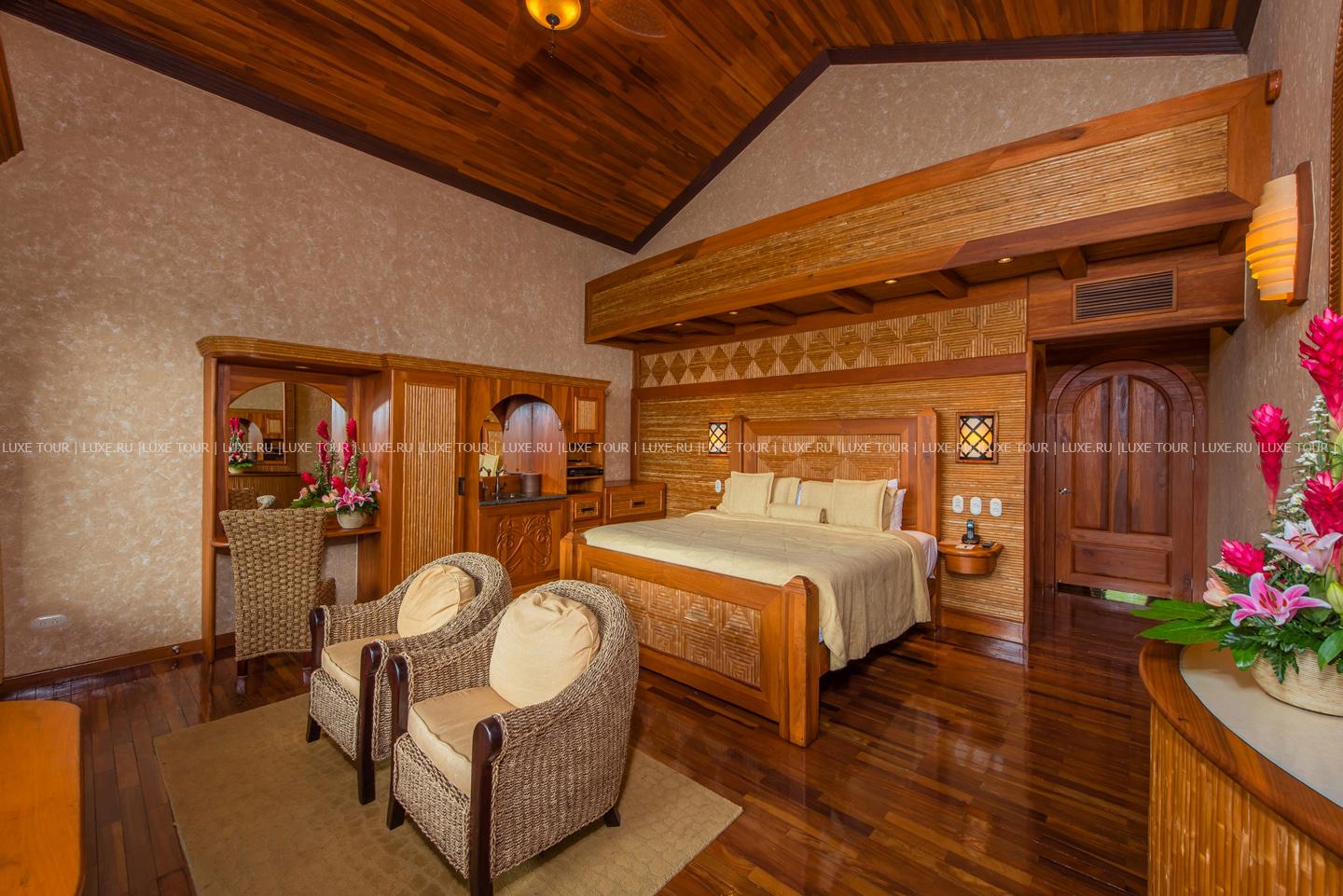 Отель располагает термальным аква-комплексом, состоящим из трех частей и включающим 30 открытых бассейнов свободной формы с каскадами, горками и с температурой 24-39,4 градусов по Цельсию, расположенных на разных уровнях (также есть отдельная открытая джакузи с подогревом). Первая часть комплекса — Las Lagunas окружена садом площадью 2 акра и состоит из 12 бассейнов (температура воды — 28-39,4 градуса по Цельсию), многоуровневых открытых и крытых террас. 4 бассейна заполняются водой непосредственно из горячих термальных источников с высоким уровнем минеральных солей; 8 бассейнов — с подогревом и хлорированы. Вторая часть — Perdido Springs («Спрятанные источники») представляет собой 7 объединенных лагунообразных бассейнов, расположенных внутри лесного каньона, в 100 м от самого нижнего уровня Las Lagunas. Perdido Springs включает бассейны с водами из горячих и холодных термальных источников. Температура бассейнов — 24,4-37 градусов по Цельсию. Ко второй части аква-комплекса ведет живописная тропа со 150 видами цветущей геликонии, виноградными кустарниками и дождевыми деревьями. Осенью 2009 года открылась третья часть аква-комплекса, расположенная в долине, с видом на реку Arenal River, — включающая 12 бассейнов и отдельную зону для плаванья с горячей термальной водой и насыпным пляжем.