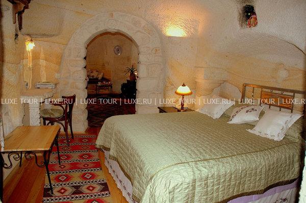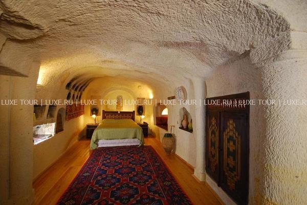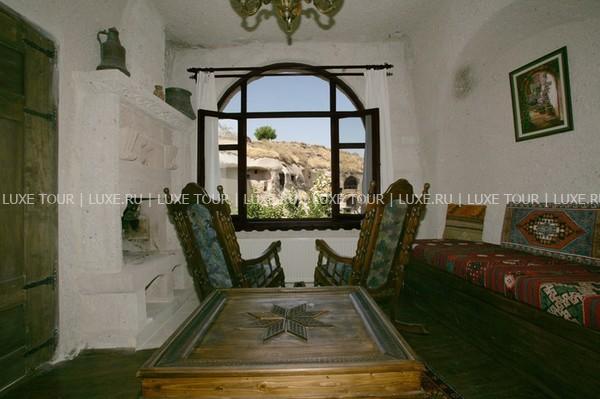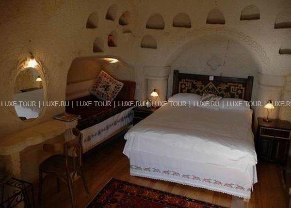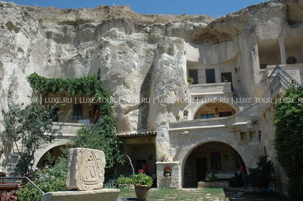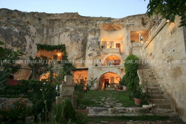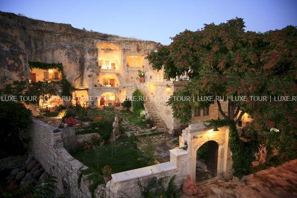 Оригинальный бутик-отель Elkep Evi Cave Hotel увитый кудрявой зеленью, расположен на вершине каменистого холма и возвышается над небольшим винодельческим городом Ургюп — в легендарной местности Каппадокия. Elkep Evi Cave Hotel завоевал среди туристических изданий и путешественников популярность и положительную репутацию, благодаря удачному сочетанию аутентичности и современных стандартов проживания. Elkep Evi Cave Hotel выдержан в древних архитектурных традициях местных поселений — здания комплекса вырезаны в пещерных скалах вулканического происхождения. Это бутик-отель с пещерными номерами, каждый из которых состоит из современных и комфортабельных скальных номеров и люксов. В интерьерах номеров преобладают простые и основательные формы. В зале для завтраков, на террасе и в саду отеля предложено меню турецкой кухни в сопровождении разнообразных напитков. Также для гостей — хаммам, ухоженный сад.