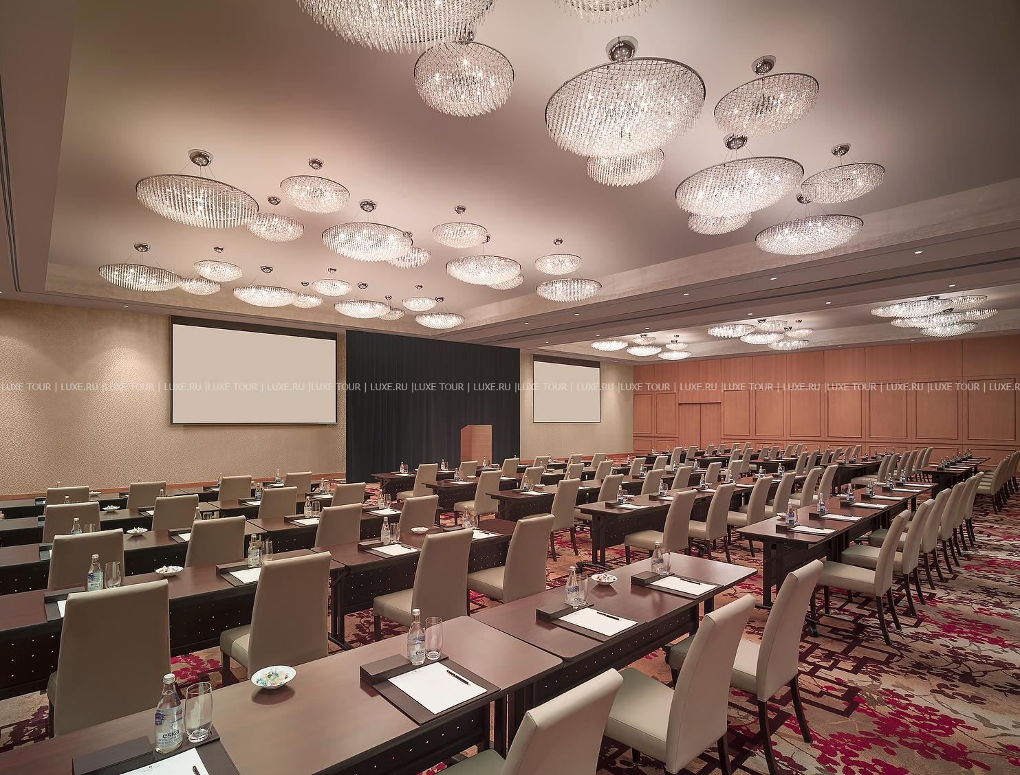 Для гостей — 8 конференц-залов, банкетный зал площадью 341 м2, бизнес-центр, услуги консьержа.