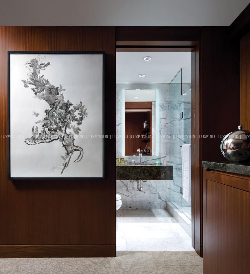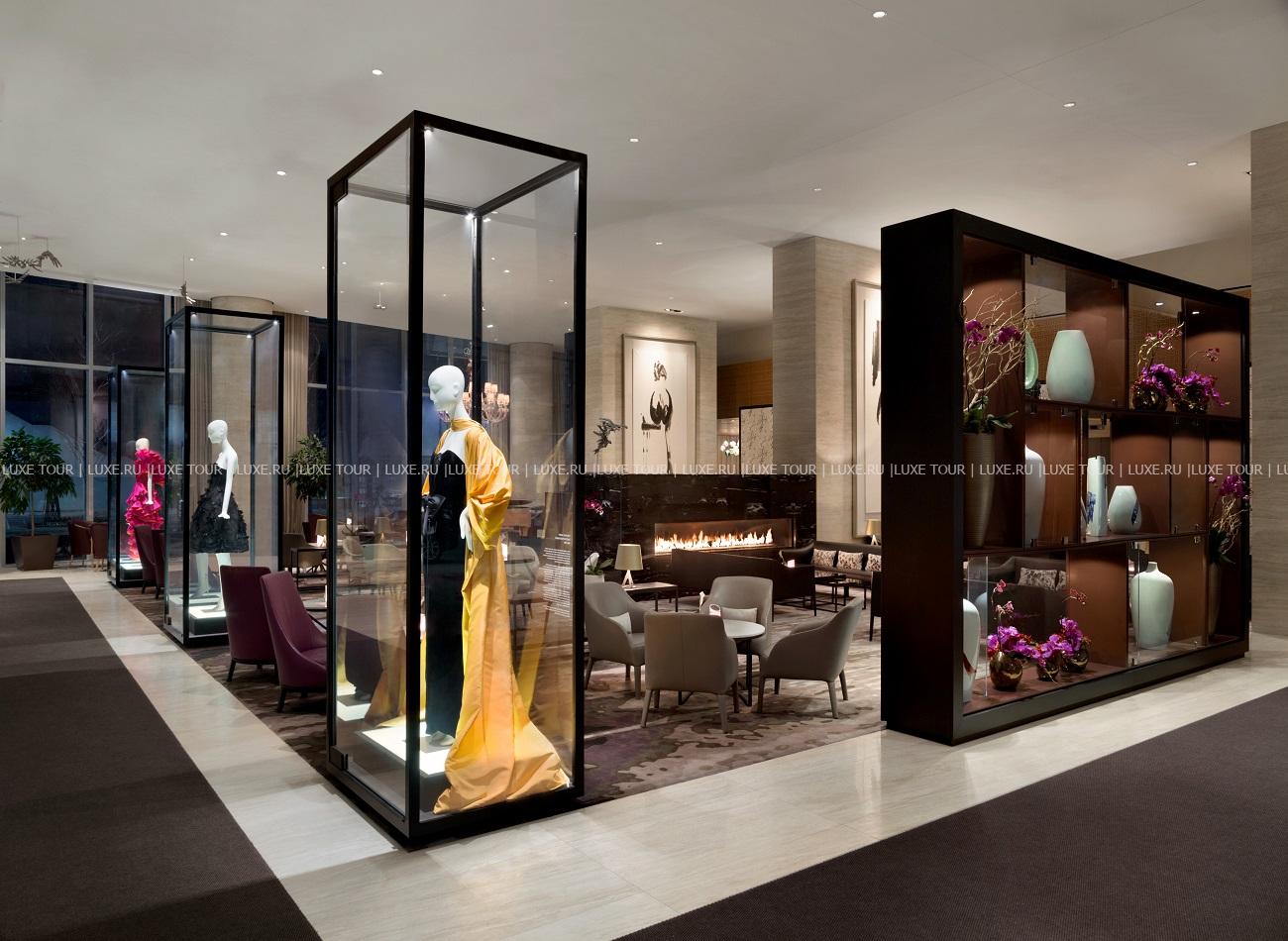- Лаундж-бар Lobby Lounge представляет собой гостиную, выполненную в урбанистическом стиле, с двухъярусными окнами, озаряющими масштабные художественные полотна, скульптуры и рояль ручной работы марки Fazioli. Гостям предлагается отведать блюда азиатской кухни, а также богатый выбор чая 68 сортов на любой вкус, и, конечно, вина, коктейли и крепкие напитки.
