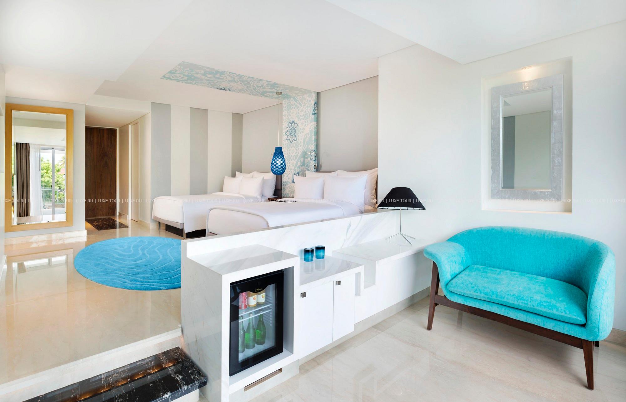 Фешенебельный Le Méridien Bali Jimbaran, расположенный рядом с белоснежным пляжем в заливе Джимбаран, сочетает шикарный современный дизайн и удобства класса «люкс». К услугам гостей просторные шикарные номера с балконами, огромный бассейн-лагуна с морской водой, занимающий большую часть территории отеля, шесть ресторанов и баров, впечатляющих разнообразием блюд и напитков, СПА-центр, предлагающий эксклюзивные процедуры, детский бассейн и замечательный детский клуб, залы для деловых мероприятий и торжеств, и многое другое. Le Méridien Bali Jimbaran по праву был отмечен многими престижными наградами и званиями – от лучшего на Бали отеля для свадеб и медового месяца до самого роскошного дизайнерского отеля в Индонезии.