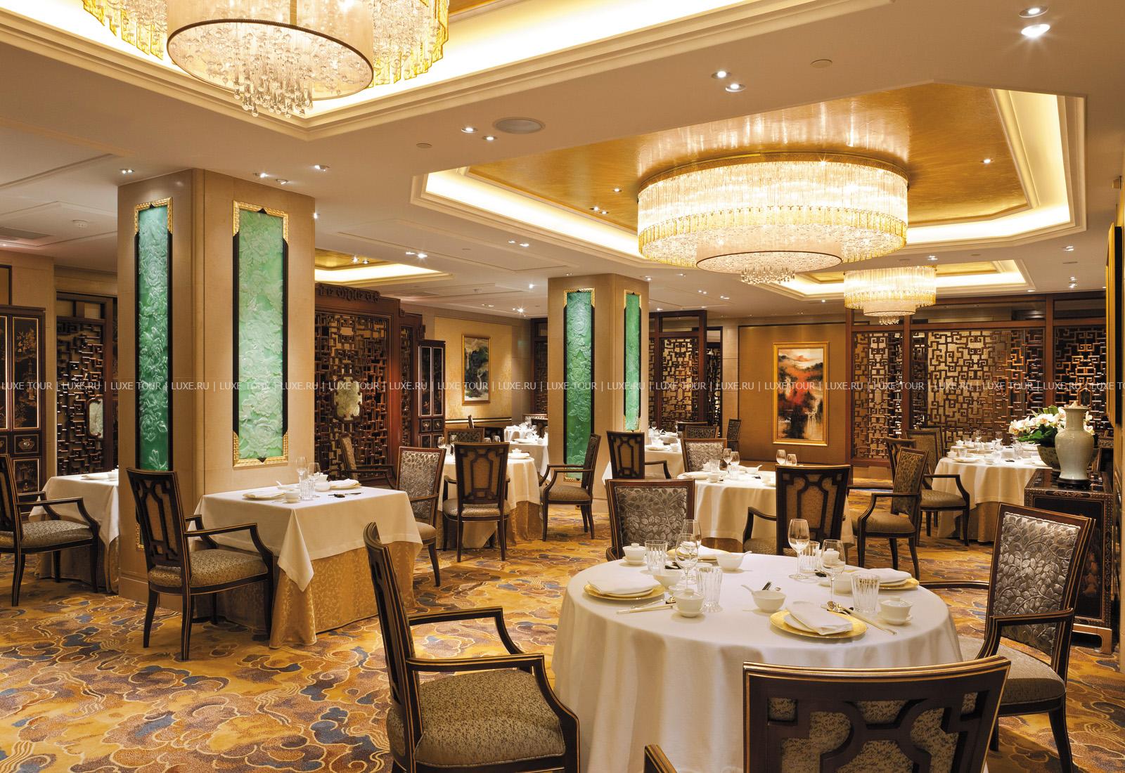 • Гостей приглашают два великолепных ресторана — ресторан высокой французской кухни L'Abeille (2 звезды Мишлен), работающий под руководством известного шеф-повара Philippe Labbé, и ресторан Shang Palace (1 звезда Мишлен), специализирующийся на кулинарных изысках китайской провинции Кантон.