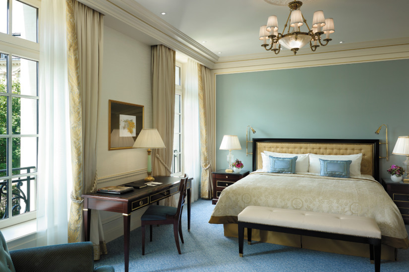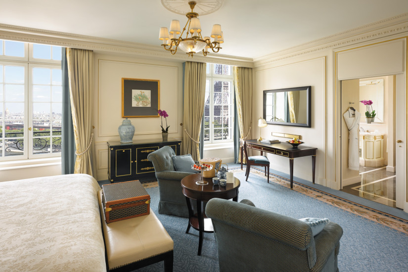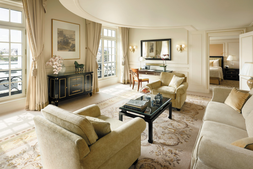 - 275 м2. Роскошный номер, расположен на 2 этаже, украшен изумительной старинной лепниной и имеет вид на площадь Иена и статую Джорджа Вашингтона. Состоит из спальни с балконом, выходящим на площадь, просторной гостиной с обеденной зоной, ванной комнаты с джакузи, большой гардеробной. К номеру могут быть присоединены две дополнительные спальни.