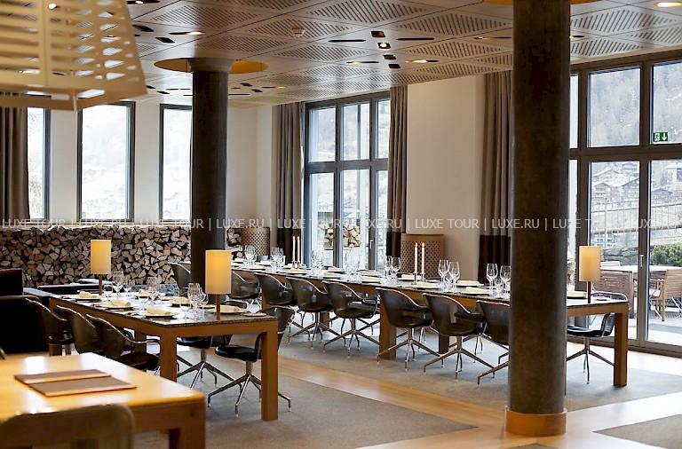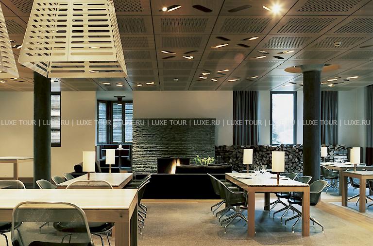 В элегантном ресторане предлагаются блюда современной европейской кухни, сезонное и вегетарианское меню. После ужина приятно расположиться на большом диване у камина с чашечкой кофе или рюмкой граппы. В уникальном многофункциональном зале Cavern, представляющем собой застекленное помещение, построенное в скальной пещере, работает стильный бар с отличным выбором напитков, а вечером звучит музыка. Также в зале устраиваются частные ужины.