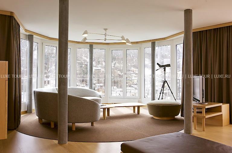 На 45-метровой скале, возвышающейся над Церматтом, в окружении величественных горных склонов расположен The Omnia Mountain Lodge Церматт. Уникальность отеля начинается с его входа — через туннель в скале гости проходят в лифт, который доставляет их в лобби, находящееся на высоте 1649 м над уровнем моря. Интерьеры The Omnia Mountain Lodge Церматт представляют необычный сочетание уютного альпийского горного дома и стильных современных интерьеров, которые создали американские дизайнеры — выходцы из Европы, возглавляемые известным архитектором Ali Tayar. С балконов стильных номеров, оборудованных новейшей техникой, открывается захватывающая панорама Церматта и альпийских вершин, среди которых — знаменитый пик Маттерхорн. Оздоровительный комплекс включает крытый/открытый бассейн, парные, фитнес-зал и массажные кабинеты. Элегантный ресторан представляет изысканную современную кухню, а бар — отличный выбор напитков. Кроме этого, отель приглашает гостей отдохнуть или провести деловую встречу в зале Cavern, построенным в скальной пещере.