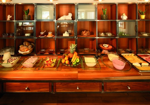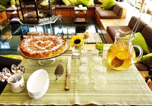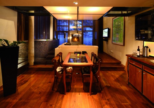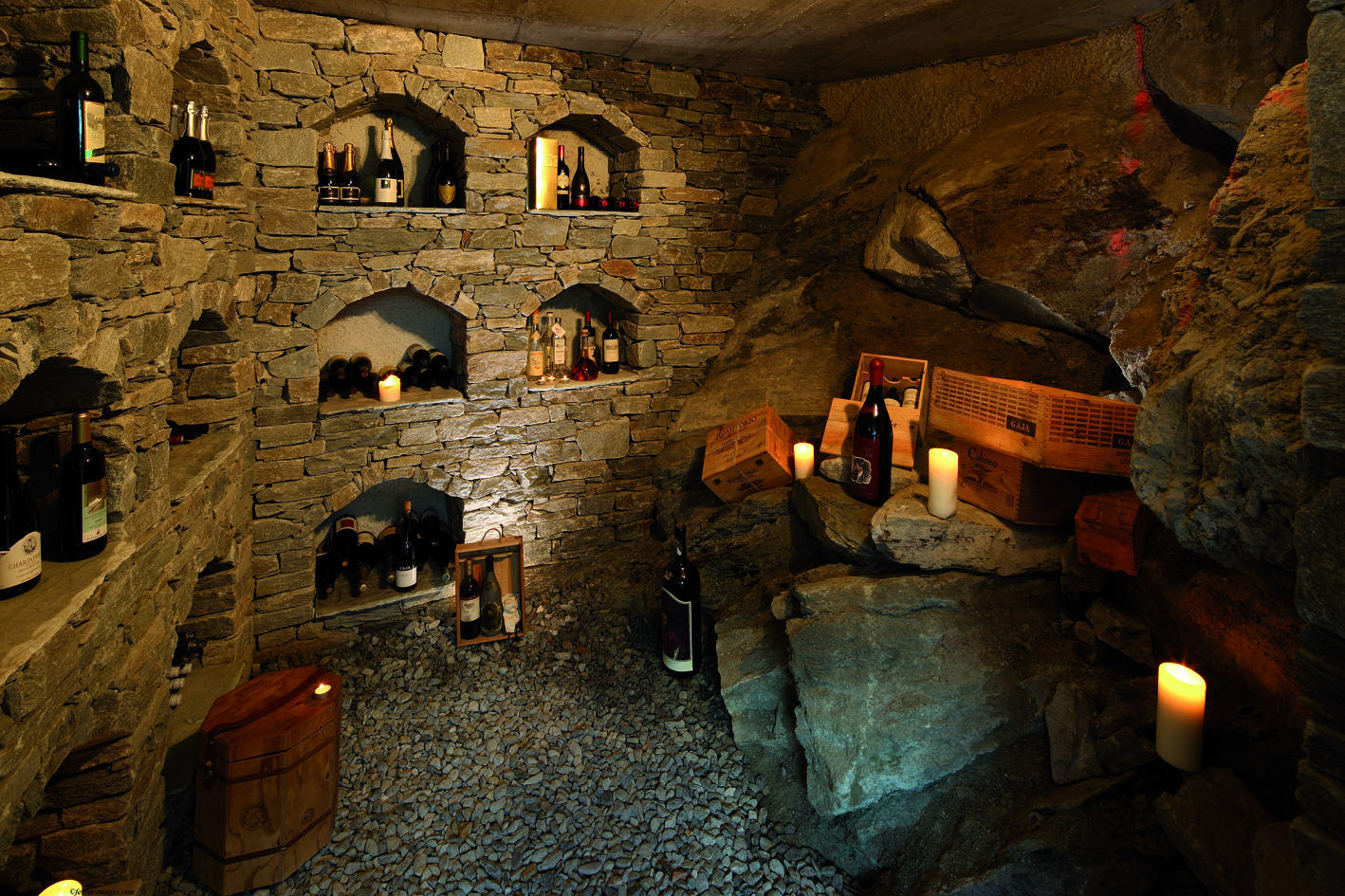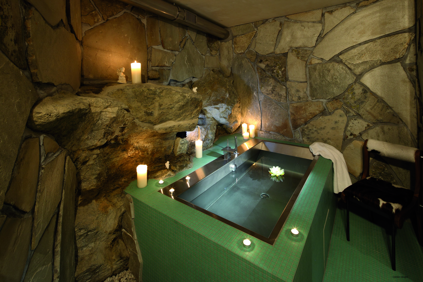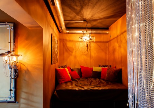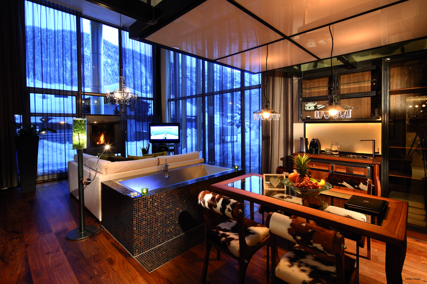 Стильный бар, украшенный оригинальными произведениями швейцарского художника и дизайнера Хайнца Джулена, — уютное место, где можно отдохнуть с бокалом вина или коктейлем на удобном диване у дровяной печи.