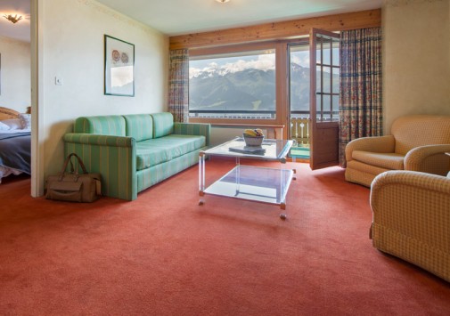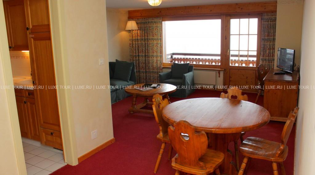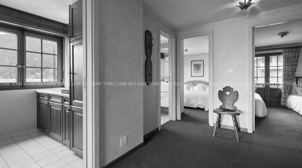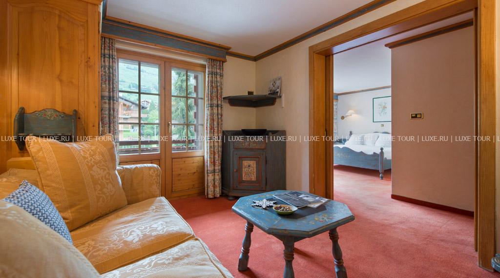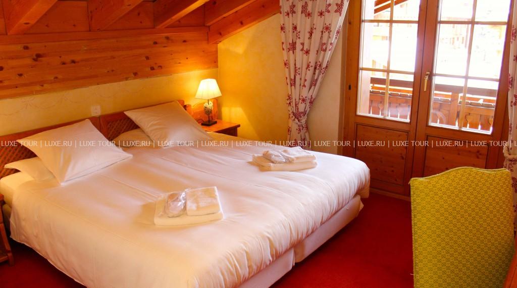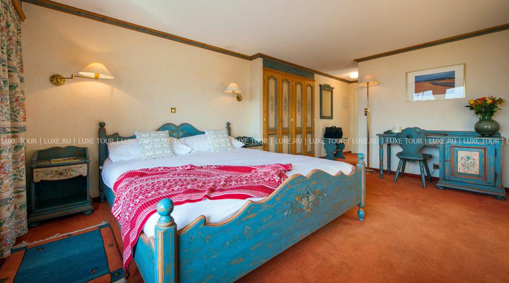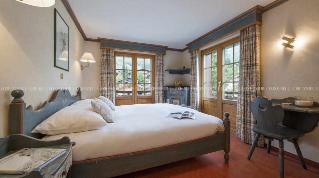 Подобное сочетание отмечает каждый уголок гостиницы. Номера выдержаны в нежных пастельных тонах, украшены красочной росписью, красивыми панно и цветовыми украшениями, оформлены с использованием деревянных крашеных орнаментированных украшений и старинной мебели, что прекрасно соотносится с открывающимися видами на горделивые вершины массива Гран-Комбин и упоительный городок Вербье.