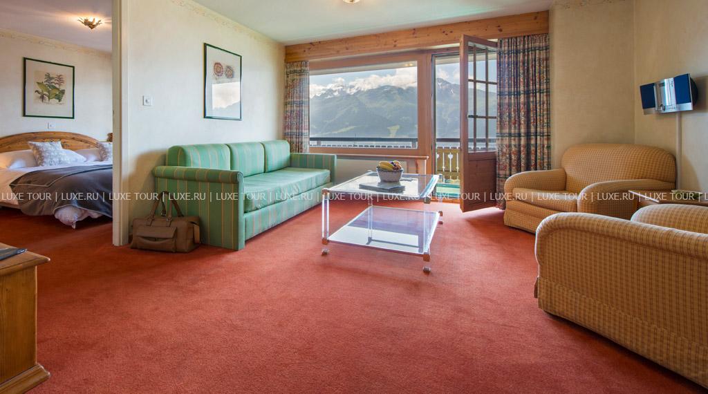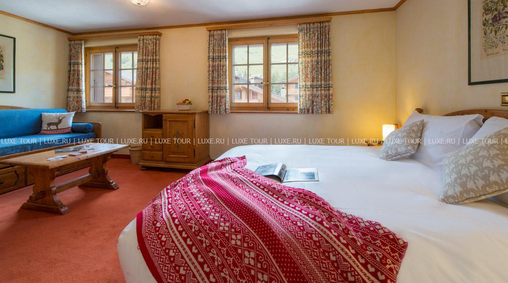 Известный благодаря продуманному убранству своих номеров, традиционному шарму альпийской жизни, излучаемому обаянию и особенной теплой атмосфере, превосходной кухне и богатейшей инфраструктуре отель уже на протяжении семнадцати лет радушно встречает гостей со всего мира. Хозяевам гостиницы Юрг и Агнесса Брупбахер удалось создать удивительную гармонию, объединяющую традиции альпийского убранства и неотъемлемые составляющие современного комфорта. Покрытая патиной и росписью меблировка из натурального дерева, старинный камин, каменная печь из Vallée de Bagnes и витражи XII века создают удивительную атмосферу гармонии и красоты, где в одной упряжке идут прошлое и настоящее.