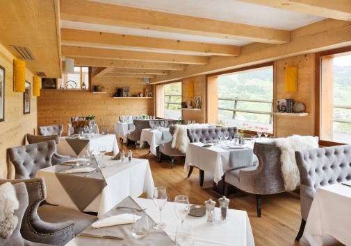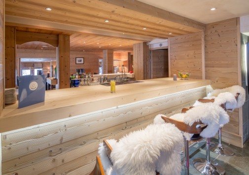 Бар с панорамным видом на величественные альпийские склоны — прекрасное место для отдыха и встреч.