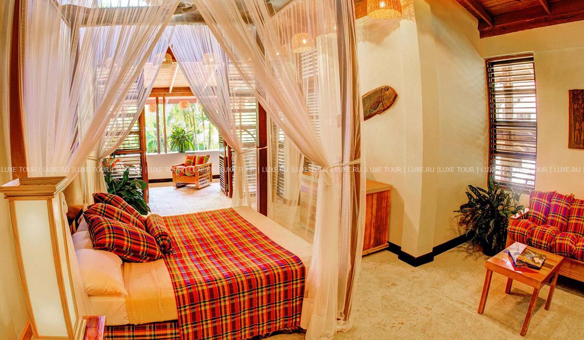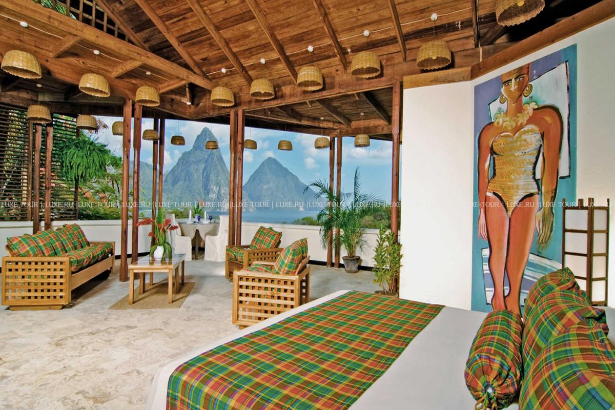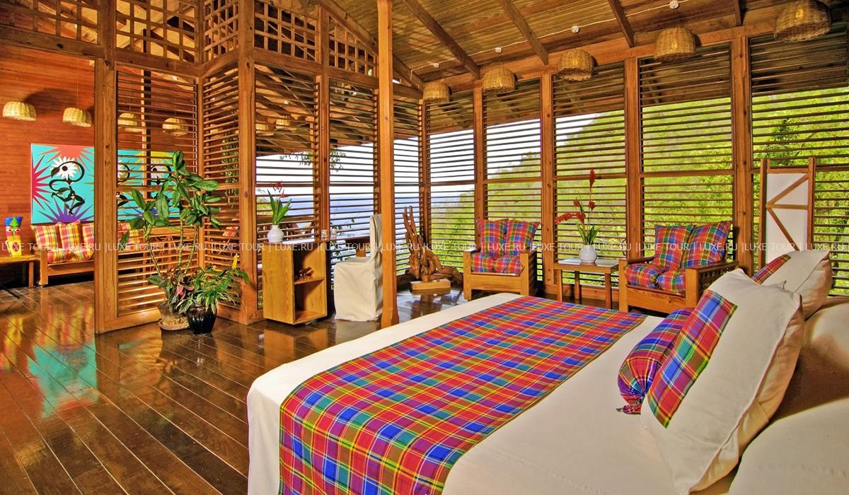 Anse Chastanet Сент-Люсия — отель, имеющий уникальное расположение. 240 гектаров первозданных тропических джунглей, два великолепных пляжа, разместившихся на территории морского заповедника — в бухтах с кристально-чистой водой, разноцветьем рыб коралловых рифов, и, конечно, бездонная синева Карибского моря и поднимающиеся из его глубин величественные пики древних вулканов Грос-Питон и Пти-Питон. Это идеальное место для дайвинга и водного спорта, для романтических путешествий, беззаботного отдыха на пляже и увлекательных прогулок в таинственную глубь девственных джунглей. Ник Трубецкой — архитектор, проектировавший Anse Chastanet Сент-Люсия, сделал акцент именно на изумительную природу здешних мест. Комплекс располагает бунгало, построенными в тени зарослей на холме и у самого пляжа, при этом дизайн всех номеров передает яркий карибский колорит — оригинальная живопись, отделка из местного дерева и тканей.