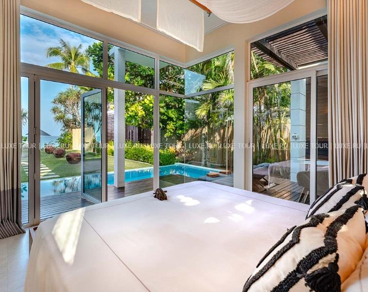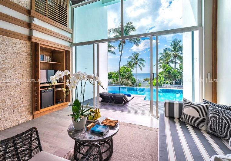 71 м2. Состоит из спальни, ванной комнаты, мебелированной террасы, бассейна. Панорамный вид на Андаманское море. Максимальное размещение — 2 человека.