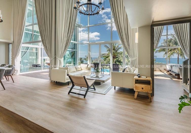 77 м2. Двухуровневый лофт, состоит из спальни, гостиной, ванной комнаты, террасы со спуском в общий бассейн. Вид на океан. Максимальное размещение — 2 человека.