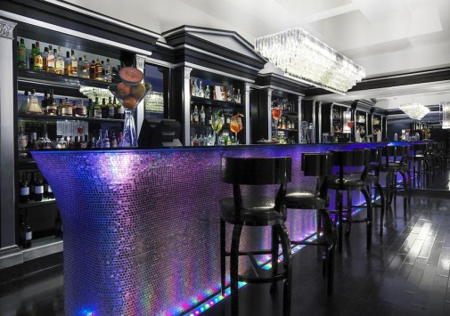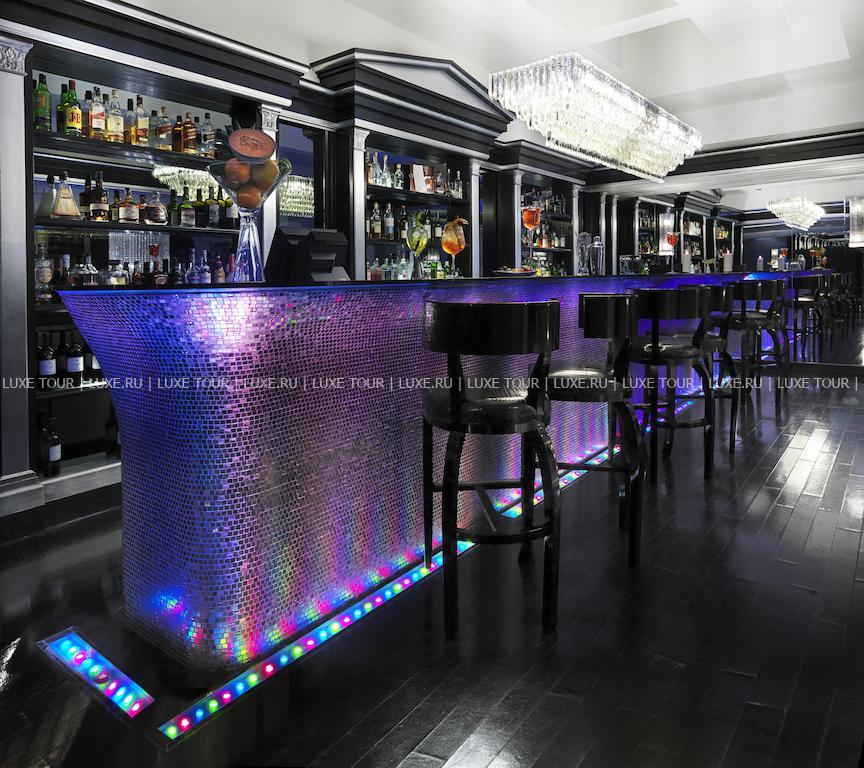 Стильный коктейль-бар предлагает широкий выбор напитков, коктейлей и закусок.