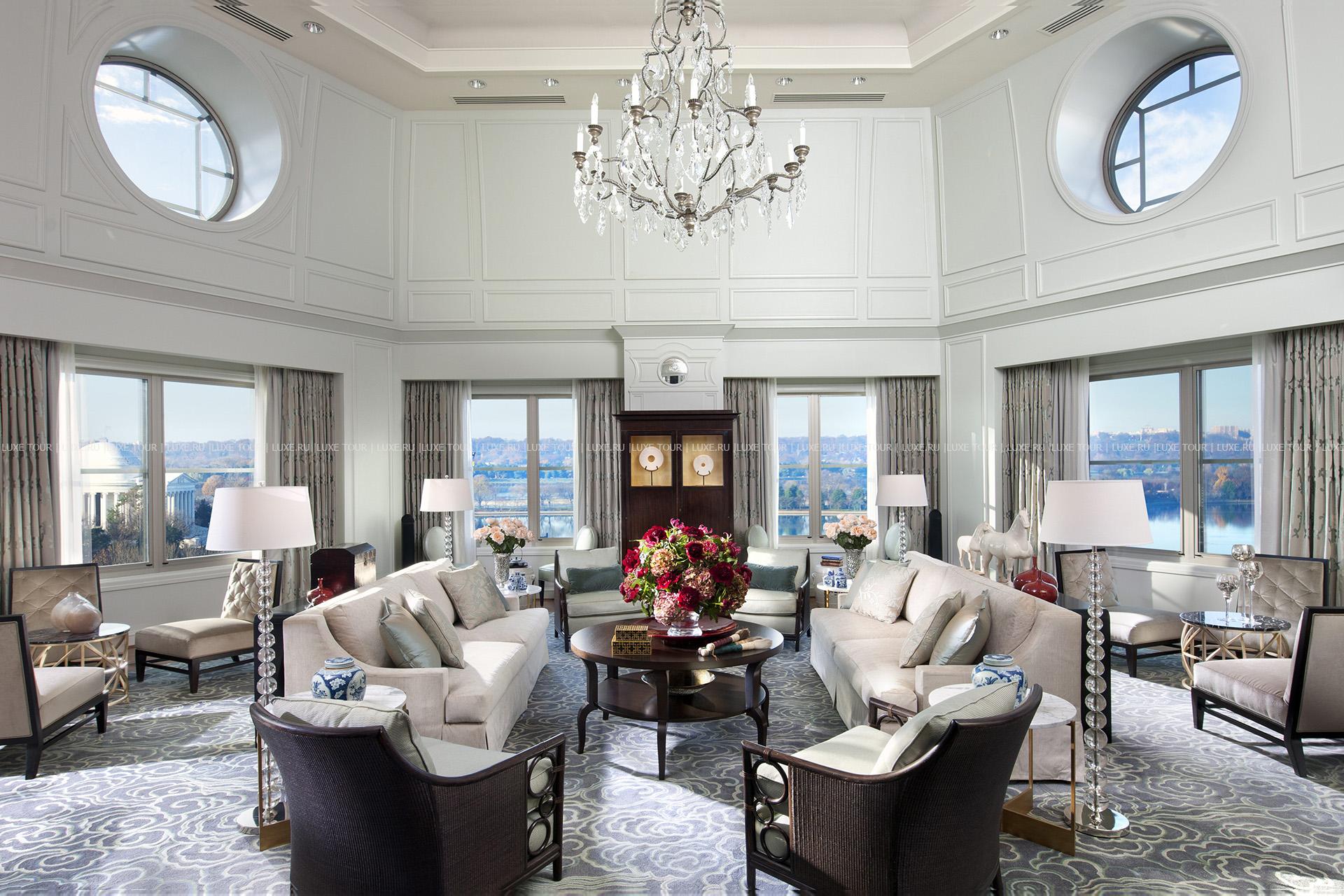 Для гостей — 9 конференц-залов, два зала для торжеств, включая Grand Ballroom площадью 750 м2 и вместимостью до 770 человек и Oriental Ballroom, вмещающий до 600 человек, бизнес-центр, сад площадью 450 м2 с видом на приливной бассейн и монумент Джефферсона, художественная галерея современного искусства, парковка, аренда автомобилей, услуги консьержа, услуги прачечной и химчистки.