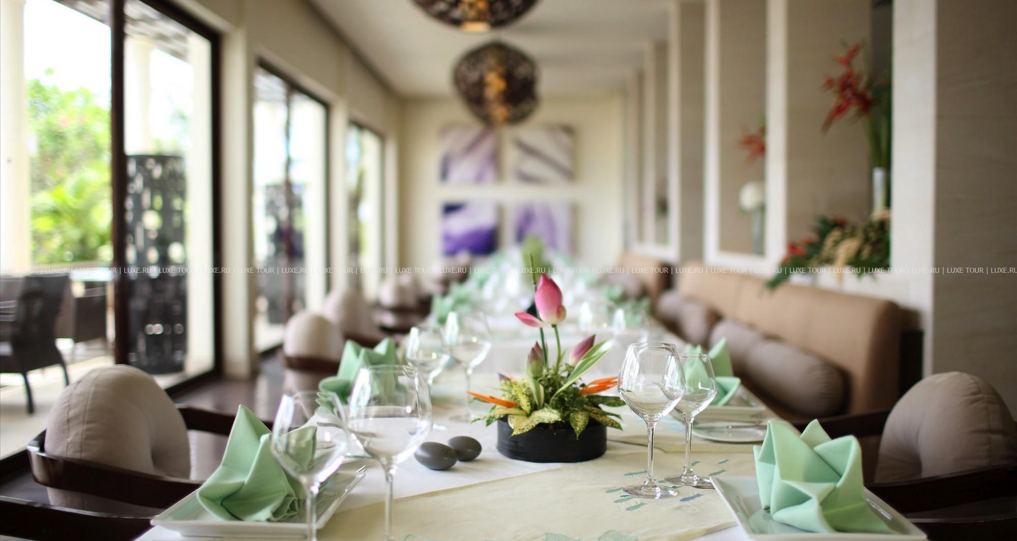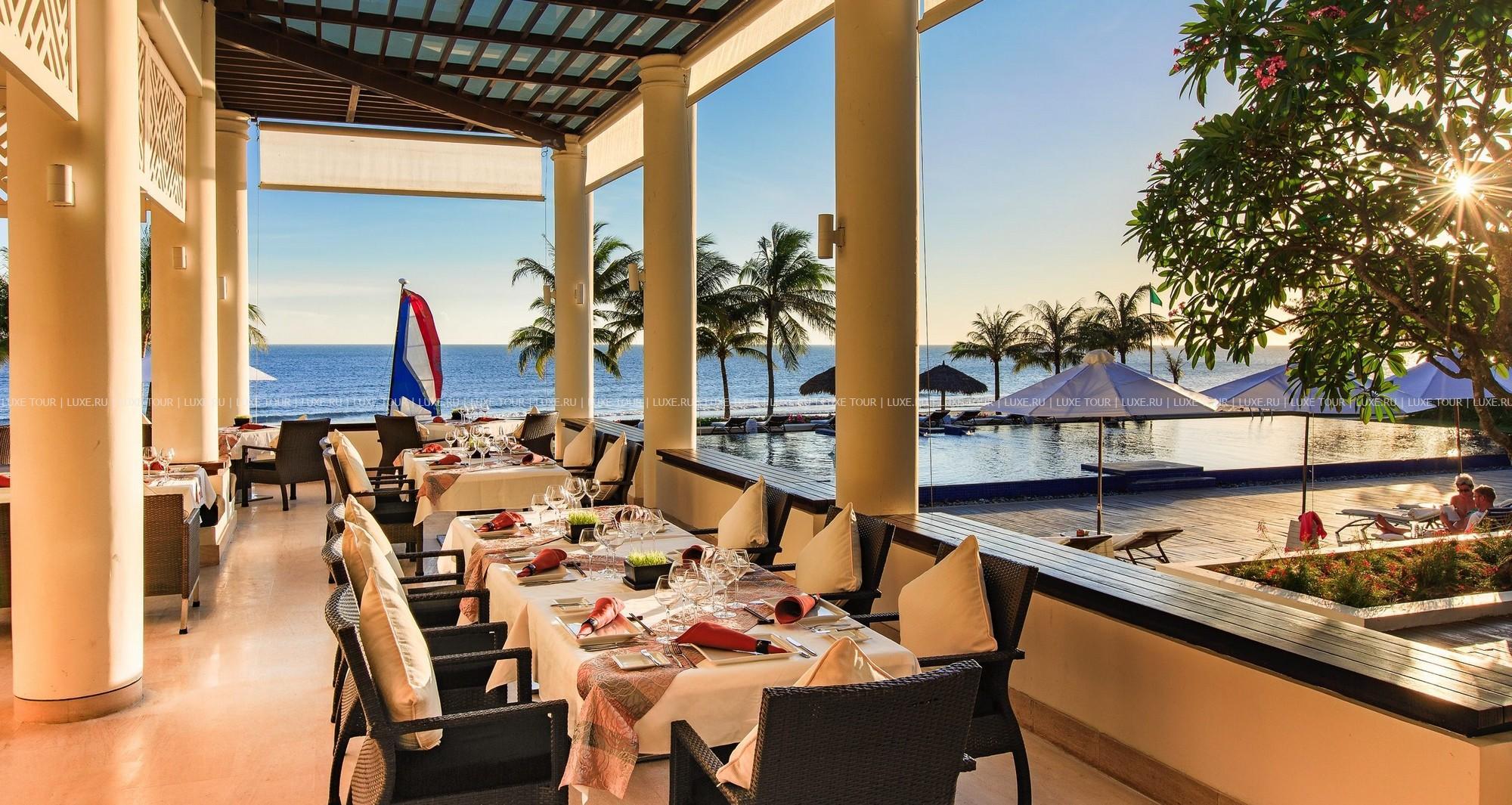 В двух ресторанах, а также на открытых террасах у бассейна, гости могут насладиться великолепными вьетнамскими блюдами, приготовленными из отборных местных продуктов, включая свежайшие дары моря.