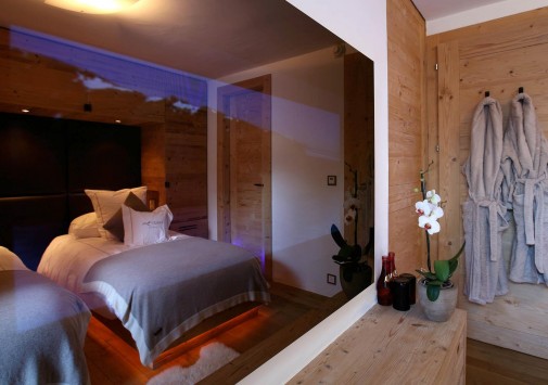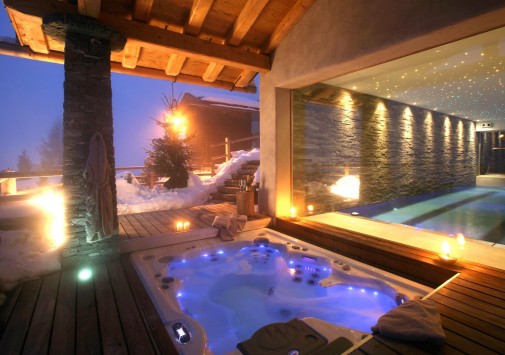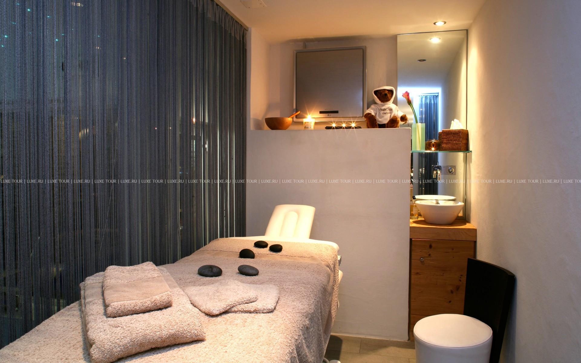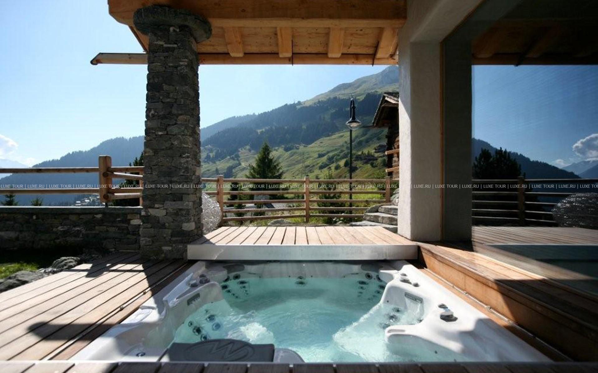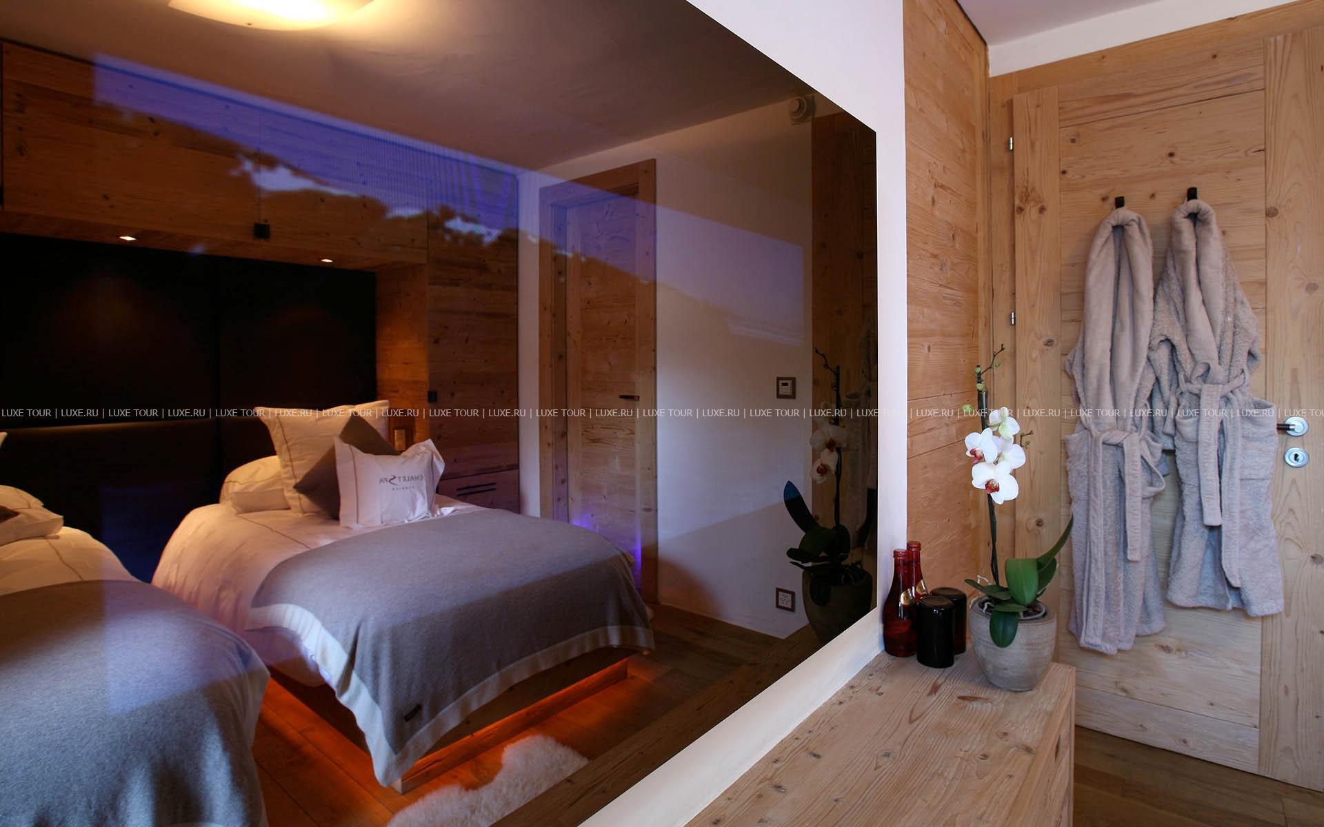 Отличительной особенностью Chalet Spa является большая спа-зона с бассейном, сауной, хаммамом. Гидромассажная ванна ручной работы из канадского кедра расположена на открытой террасе, откуда открывается великолепная панорама гор.