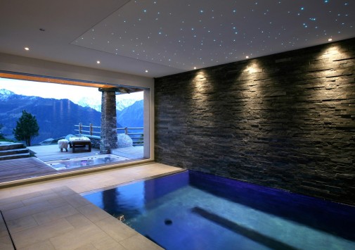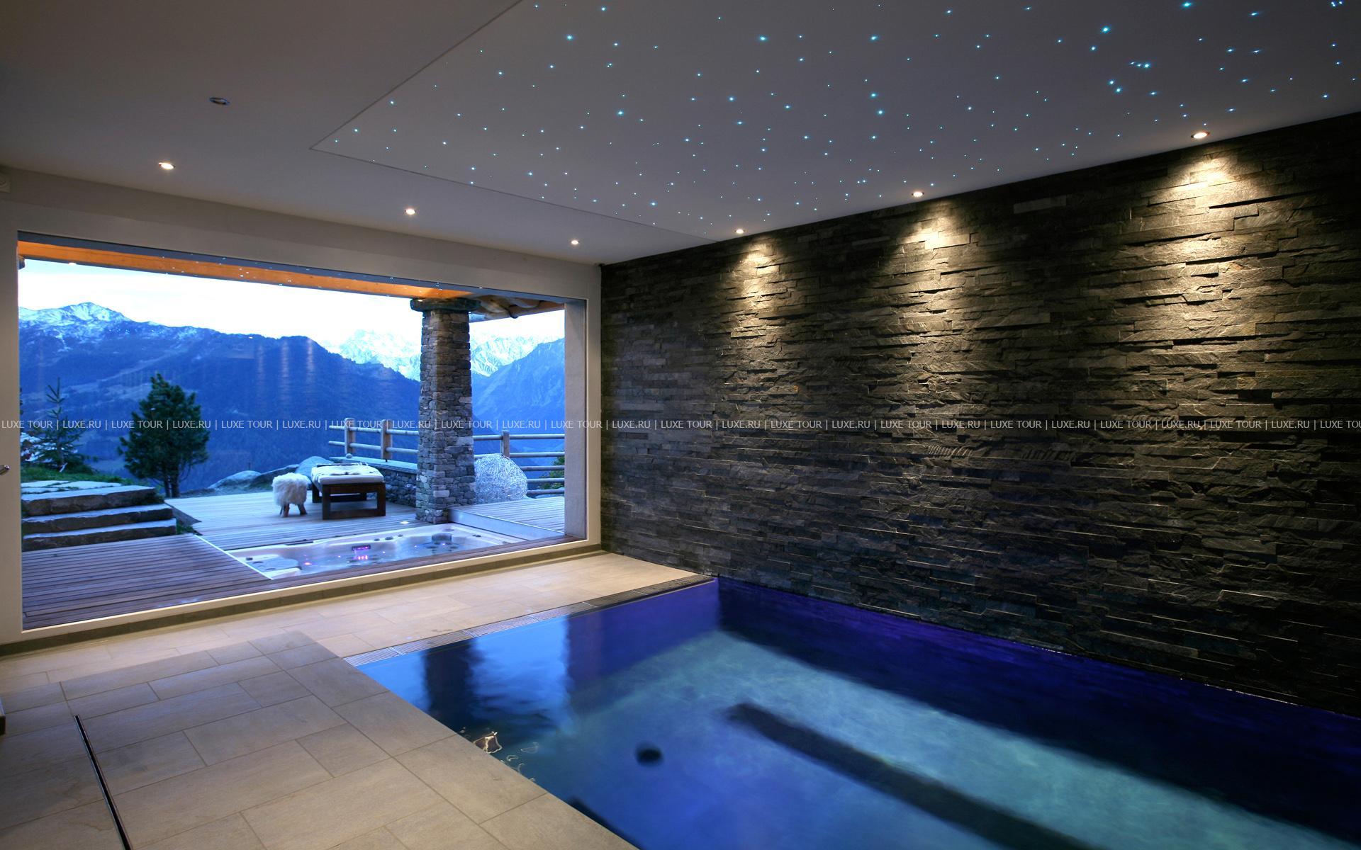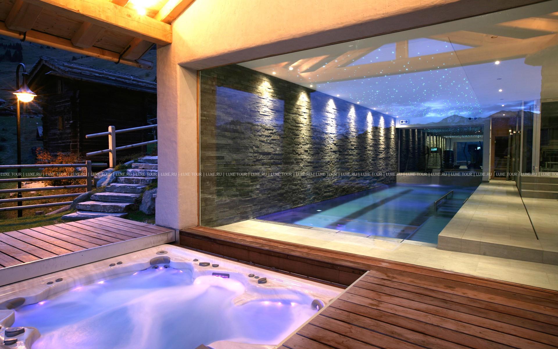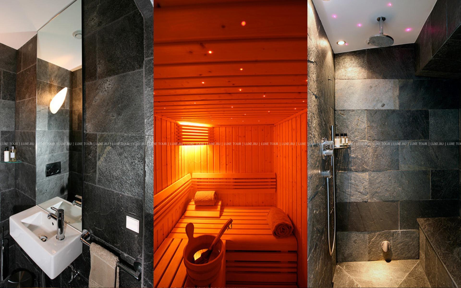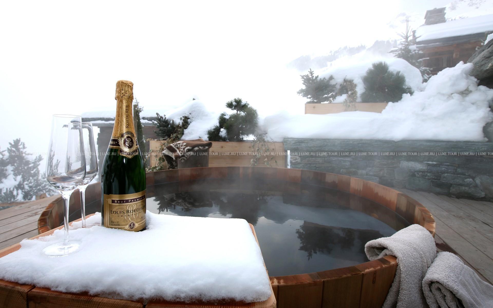 Отличительной особенностью Chalet Spa является большая спа-зона с бассейном, сауной, хаммамом. Гидромассажная ванна ручной работы из канадского кедра расположена на открытой террасе, откуда открывается великолепная панорама гор.
