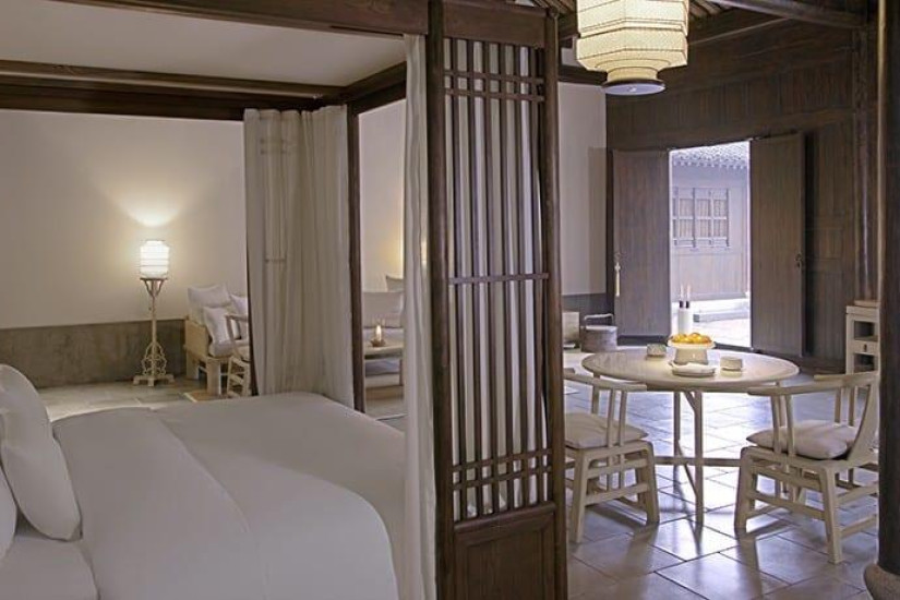 - В отеле 42 номера различных категорий, включая 16 Village Rooms, 9 Village Suites, 12 Deluxe Village Suites, 4 Village Villas (Camphor, Magnolia, Bamboo и Tea) и Amanfayun Villa. Номера, расположенные в исторических зданиях, восхищают изяществом и оригинальностью интерьеров, каждый из которых индивидуален: отделка из благородного дерева, изящные резные решетки, элегантная мебель, традиционные китайские фонари, изысканные произведения искусства, предметы антиквариата и каллиграфия, украшающая стены. Большинство номеров располагают внутренними двориками с зоной отдыха.