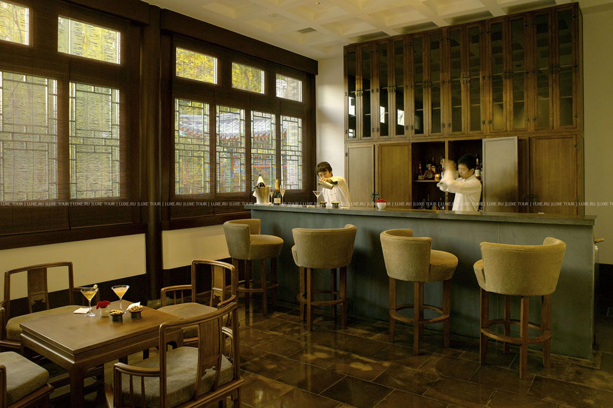 • Бар с открытой террасой, выходящий на сады и пруд, располагает к приятному отдыху в тихой и уютной атмосфере, где предлагаются легкие закуски и различные напитки. Также рядом с прудом находится музыкальный павильон, где в теплую погоду проходят выступления музыкантов. Вечерами звучит живая музыка.
