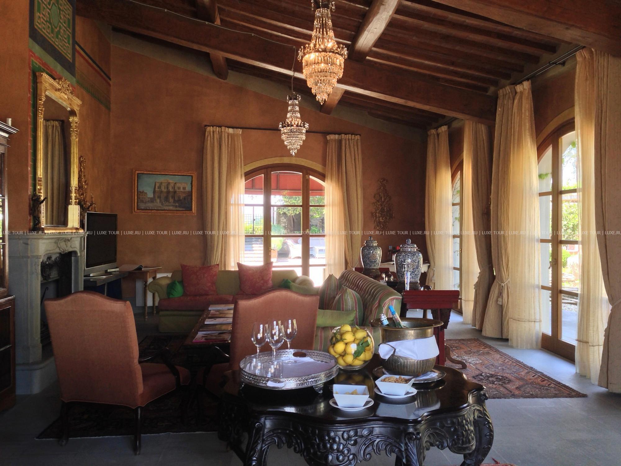 Сегодня за коралловым фасадом Villa Mangiacane Италия гостей ждет поистине дворцовое убранство в стиле эпохи Ренессанса: антикварная мебель, камины, предметы старины, сверкающие хрустальные люстры и зеркала, изумительные фрески и подлинные шедевры искусства. При этом шикарные номера Villa Mangiacane Италия оборудованы с современным комфортом, а из окон и с просторных террас открываются чарующие виды на тосканские ландшафты и Флоренцию. В ресторане предлагаются изысканные итальянские блюда, приготовленные из отборных местных продуктов, включая замечательное оливковое масло, а прекрасным дополнением к отменной кухне является вино с собственных виноградников Villa Mangiacane Италия. Два открытых бассейна в живописном парке и СПА центр с крытым подогреваемым бассейном, парными и разнообразием процедур идеально подходят для релаксации и приятного отдыха.