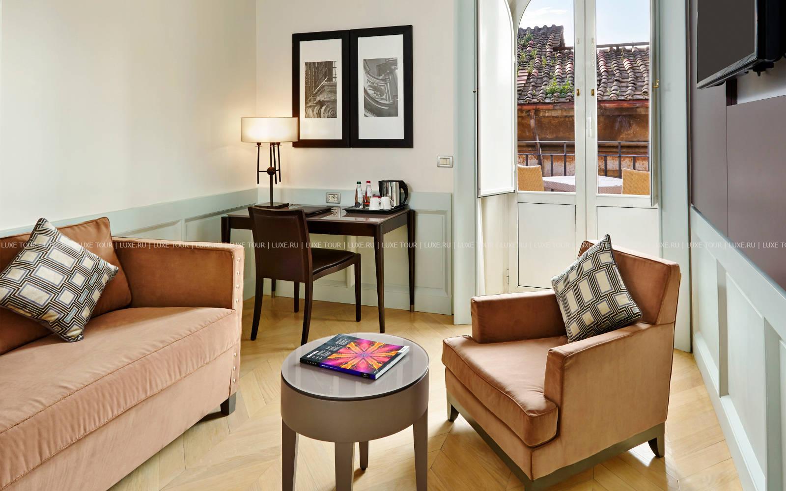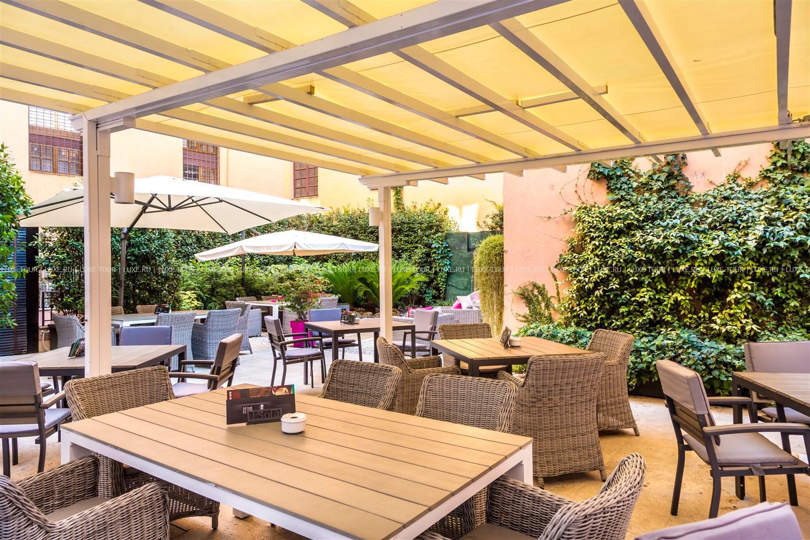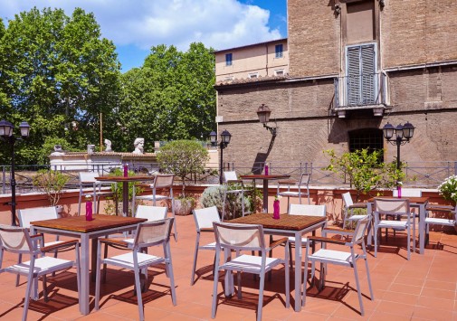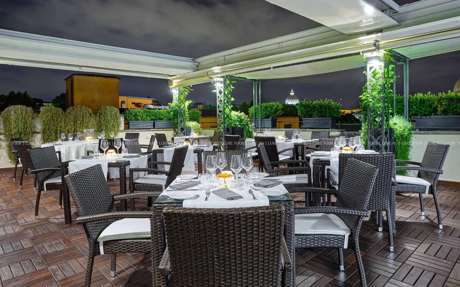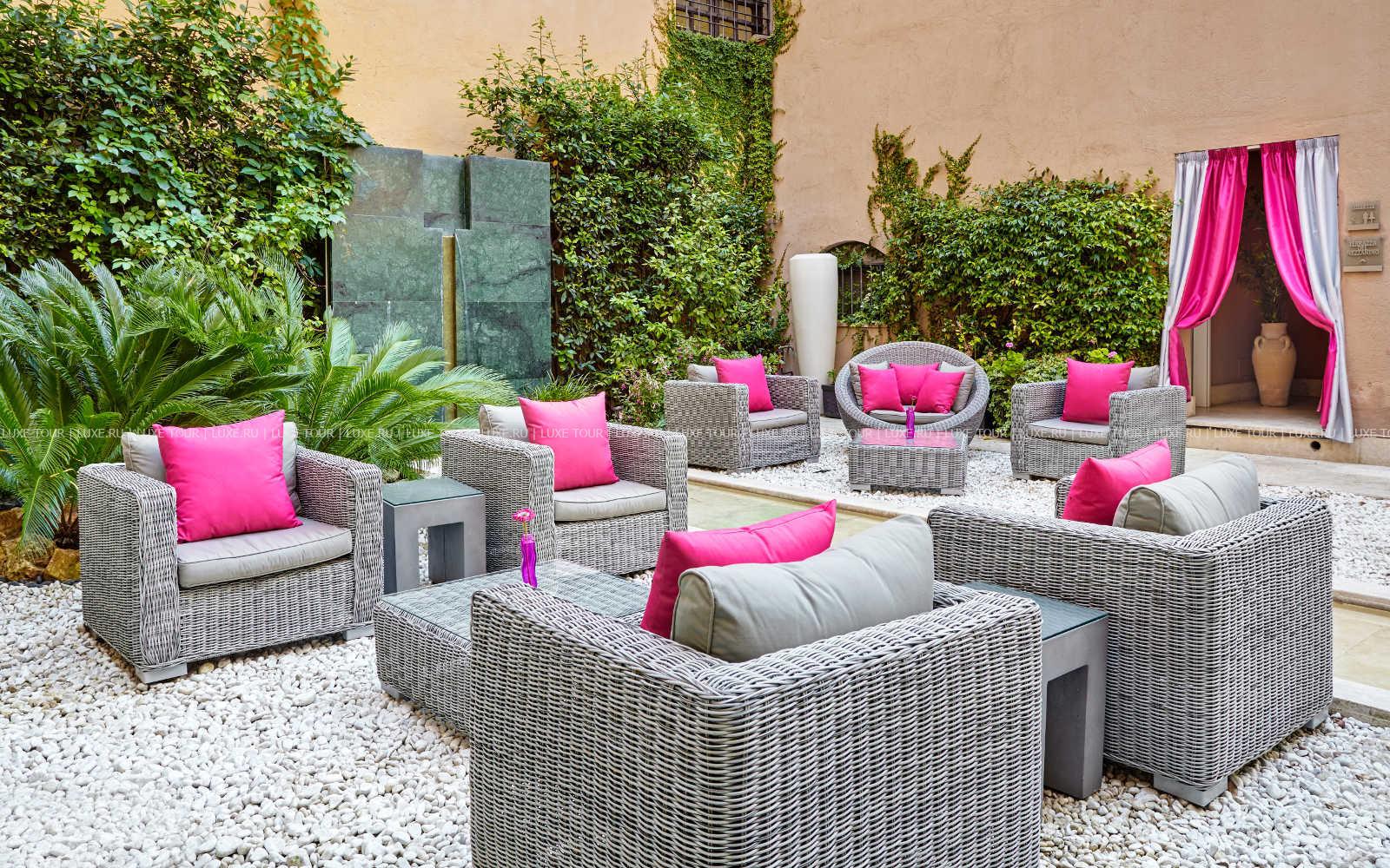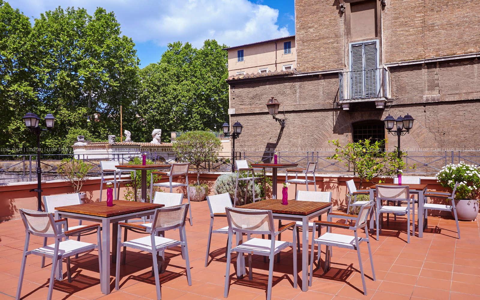 Также в теплое время столики сервируют в саду во внутреннем дворике отеля St. George Roma.