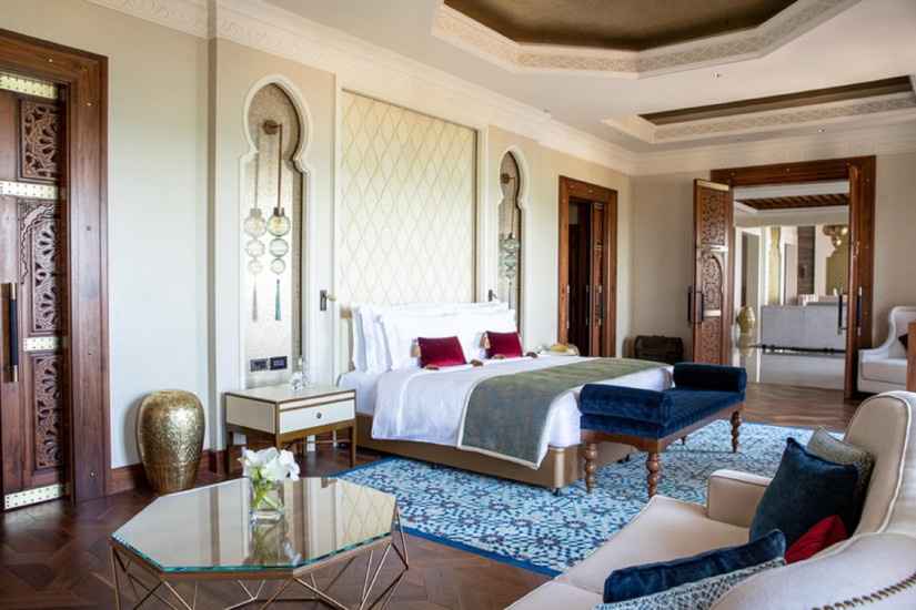 - 660 м2. Настоящий «дворец во дворце», имеет частный лифт, состоит из приемной-гостиной в восточном стиле Majlis, просторной гостиной, столовой, 3 спален с ванными комнатами и гардеробными, большой террасы с видом на Персидский залив. Максимальное размещение – 4 взрослых + 2 ребенка или 5 взрослых. Гостям предоставляется доступ в Wild Wadi Water Park, доступ в Club Executive и Premium Leisure Club Lounges, а так же трансфер из и до международного аэропорта в Дубаи. Возможно бронировать данный номер с одной или двумя спальнями.