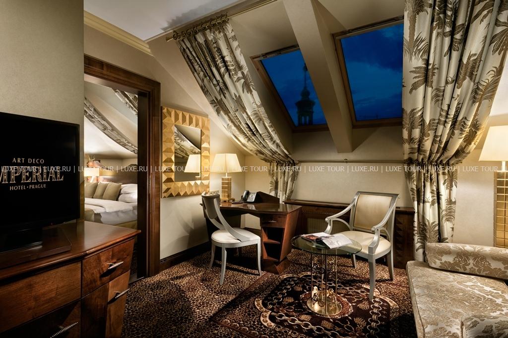 Великолепное здание Art Deco Imperial Hotel Прага, расположенное в самом сердце города, было построено в 1913 — 1914 гг. архитектором Ярославом Бенедиктом по заказу известного пражского владельца гостиниц Яна Коларже, и полностью реконструировано в 2007 году. Отель состоит в списке исторических объектов Праги при организации ЮНЕСКО и даже после обновления сохранил свою архитектурную концепцию, являя собой прекрасный образец в стиле ар-деко с элементами кубизма. За величественным фасадом Art Deco Imperial Hotel Прага скрываются не менее впечатляющие интерьеры: изумительная мозаика и витражи, отделка из мрамора и резного дерева, бронзовые скульптуры и изящная антикварная мебель. Утонченная роскошь присутствует во всех помещениях отеля, включая шикарные комфортабельные номера, превосходный гастрономический ресторан, элегантный лобби-бар, залы для конференций и банкетов и даже новый фитнес-центр, разместившийся на месте старинного винного погребка.
