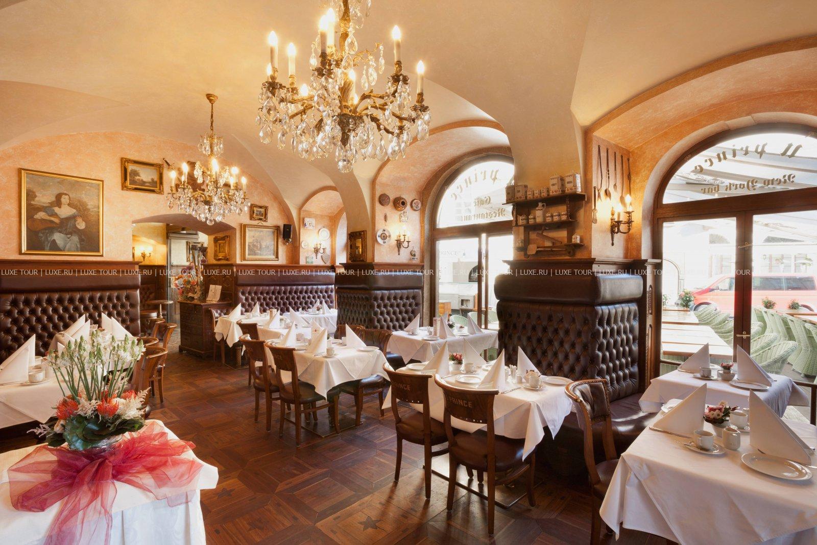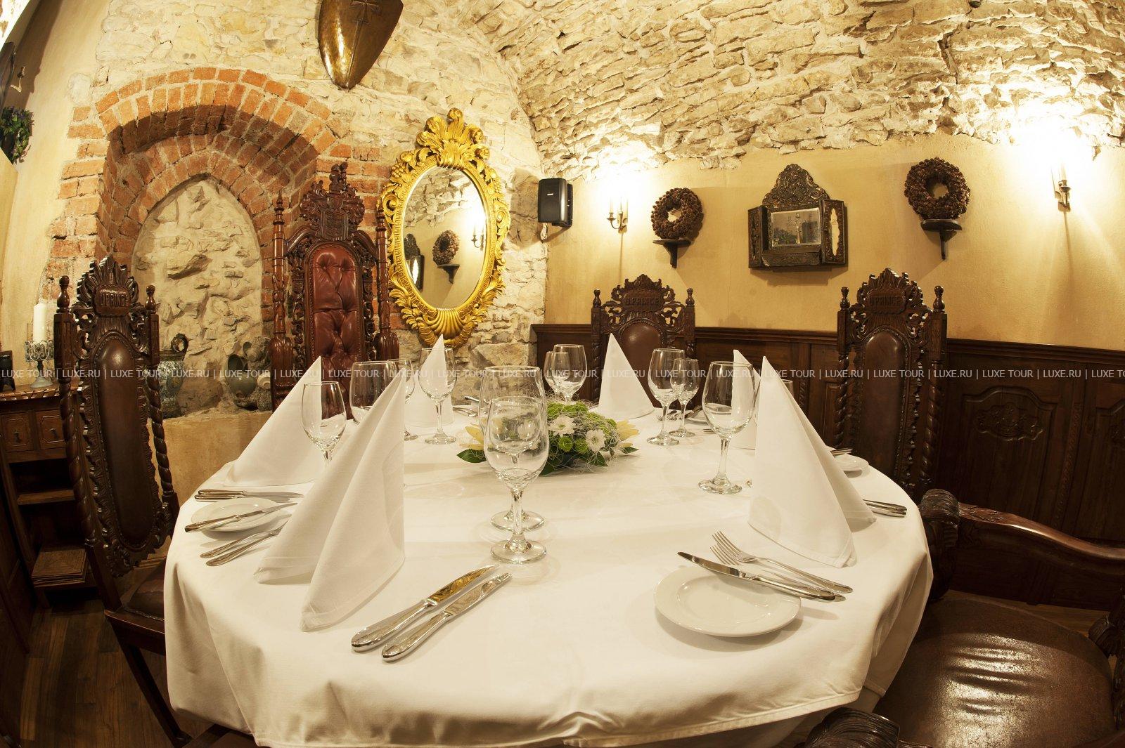 Великолепный ресторан отеля включает три этажа: на первом можно отведать деликатесы чешской и международной кухонь, а также вечером послушать живую музыку под барочными сводами, создающими особую акустику; изысканными блюдами можно насладиться и в зале, расположенном в погребе со старинными готическими и романскими стенами.