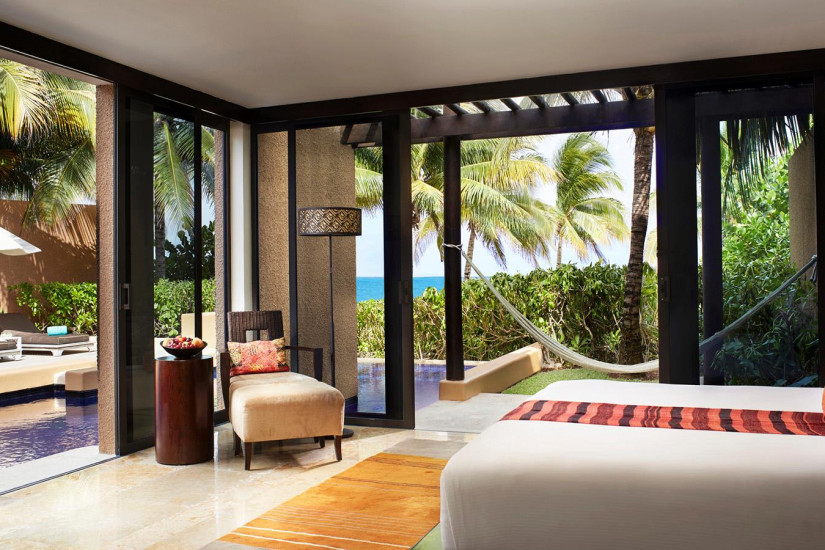 - В отеле 132 комфортабельных номера следующих категорий: 45 Garden Pool Villas, 25 Courtyard Pool Villas, 8 Spa Pool Villas; 17 Two Bedroom Villas (Two-Bedroom Sunset Lagoon Pool Villa, Two-Bedroom Sunrise Lagoon Pool Villa, Two-Bedroom Estuary Pool Villa); 7 Three Bedroom Beach Front Villas, 30 Three-Bedroom Townhouses. Минималистский дизайн дополнен мексиканской мебелью ручной работы. Меблированные террасы выходят на частные тропические сады или на пляж и лагуну, залив/Карибское море.