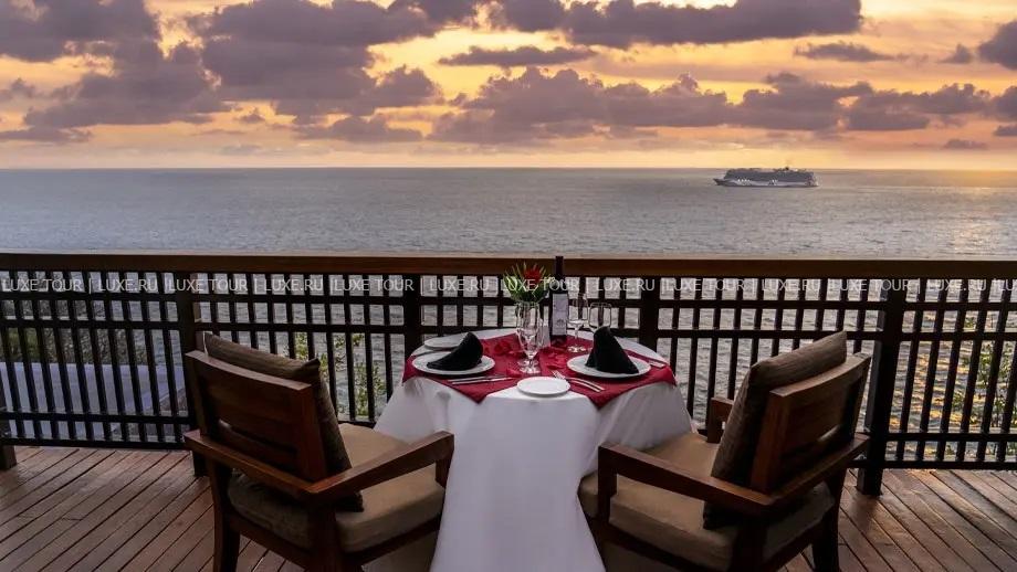 - Ресторан Saffron с видом на Тихий океан предлагает меню современной тайской кухни с использованием классических рецептов. Предлагаются услуги по организации приватных ужинов в винном погребе ресторана (максимальная вместимость — 12 человек).