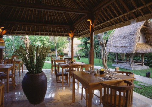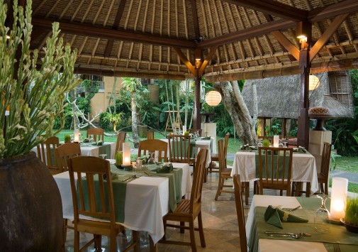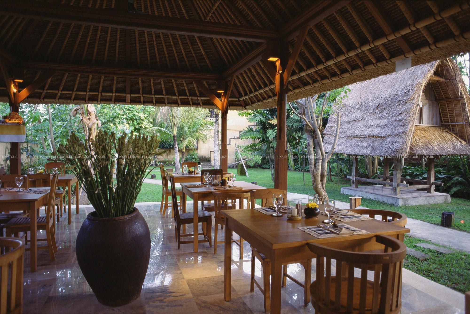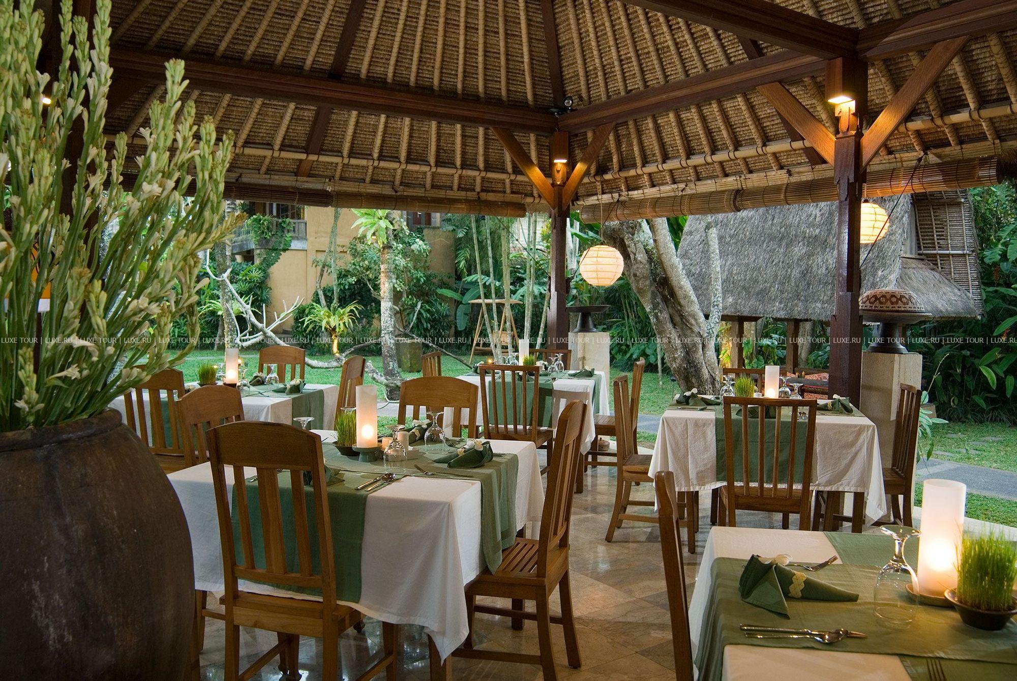 В ресторане, окруженном пышным тропическим садом, предлагаются традиционные балийские деликатесы и блюда интернациональной кухни.