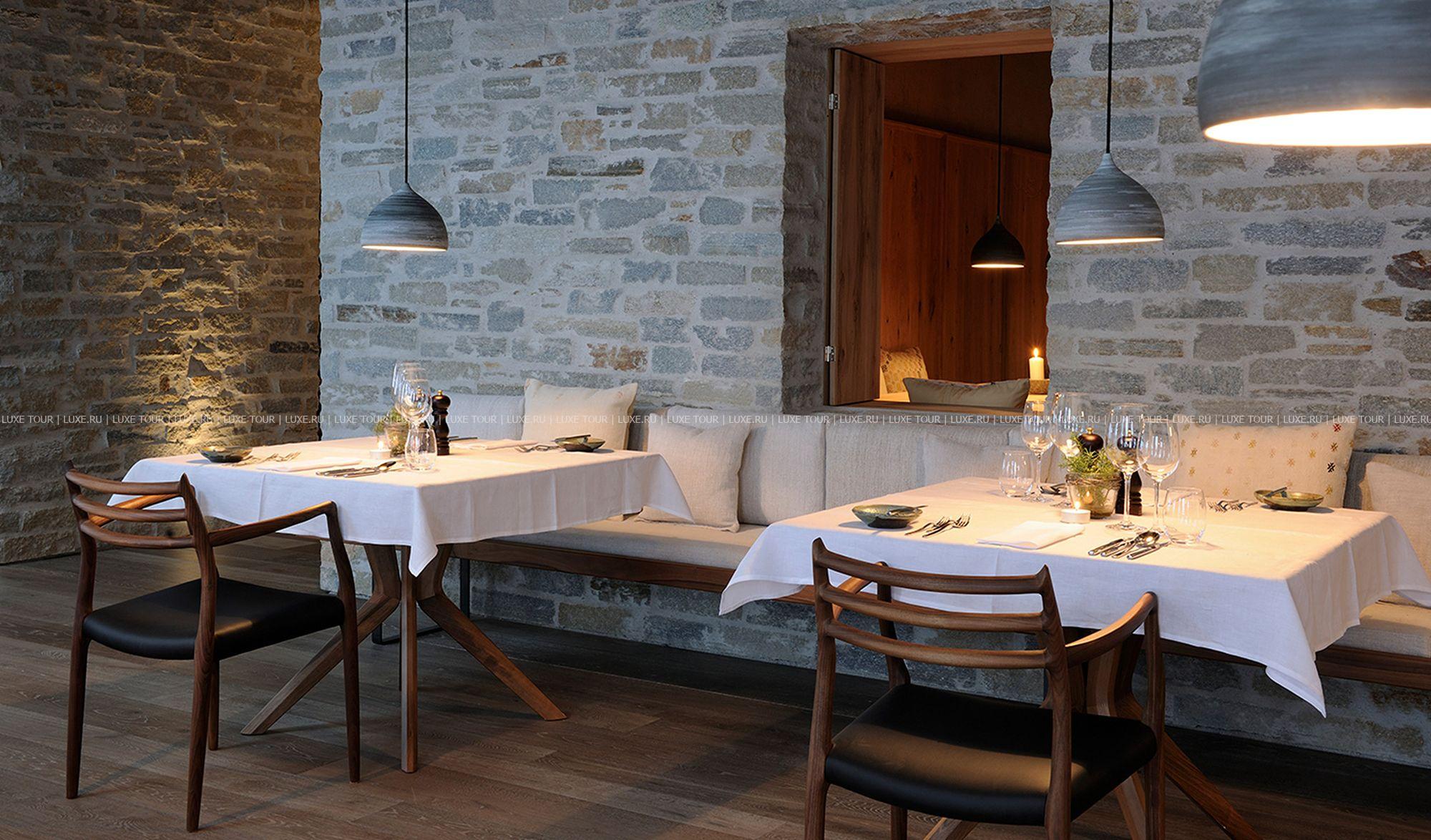 В элегантном ресторане предлагаются традиционные блюда австрийской и региональной кухни, приготовленные из свежайших продуктов с собственной фермы отеля – от мяса и яиц до фруктов, овощей и фирменного хлеба ручной выпечки.