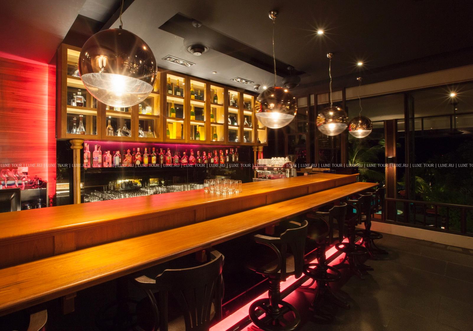 На просторной террасе бара у бассейна устраивают барбекю и предлагают коктейли.