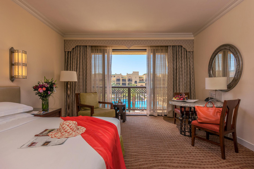 В отеле 500 комфортабельных номеров следующих категорий: 468 Rooms (234 King Rooms, 234 Twin Rooms), 32 Suites (Mazagan Suites, Executive Suites, Ambassador Suites, Royal Suites). Этнические интерьеры с деревянной мебелью из темного дерева декорированы местными мастерами с использованием традиционных техник. Ванные комнаты отделаны мозаикой ручной работы (в Suites), из панорамных окон открываются виды на Атлантический океан, гольф-поле или бассейн.