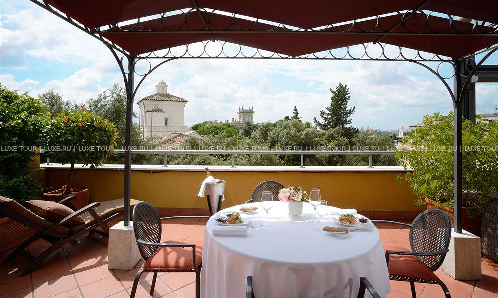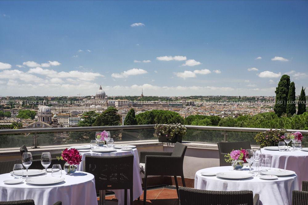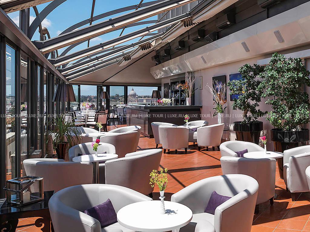 На террасе последнего, седьмого этажа находится уютный бар Bellavista с захватывающим видом на Вечный город, где в романтической атмосфере можно выпить чашечку чая или кофе, коктейль или бокал вина и отведать меню закусок в стиле tapas.