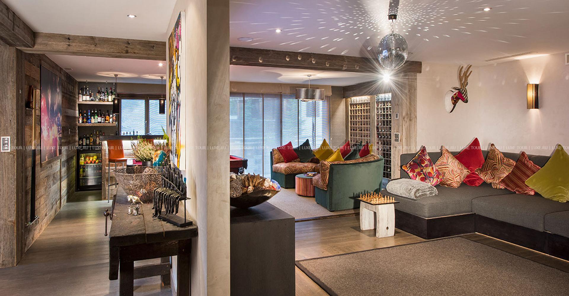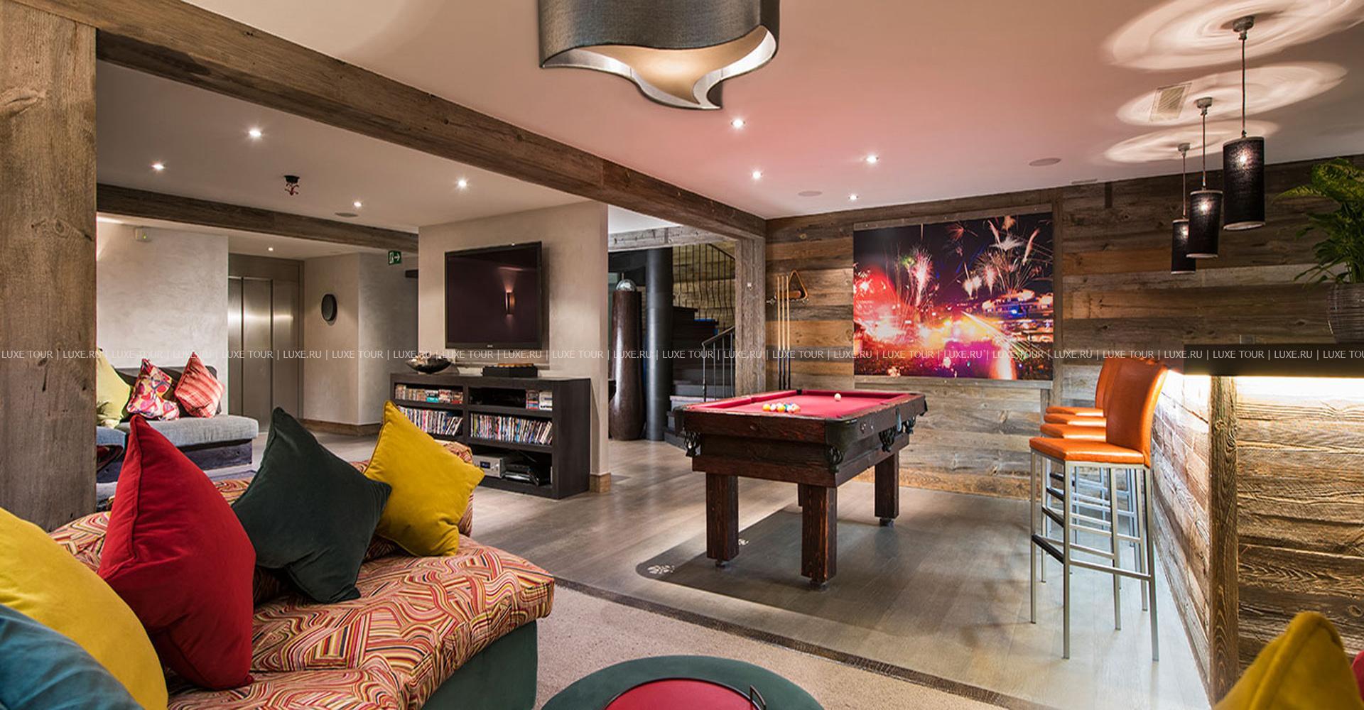 Спа зона шале включает: закрытый бассейн, сауна, а также гидромассажная ванна, расположенные как внутри, так и снаружи здания. Любители активного отдыха могут также зайти в спортивный зал, а летом сыграть партию в крокет на лужайке.