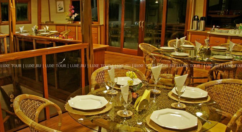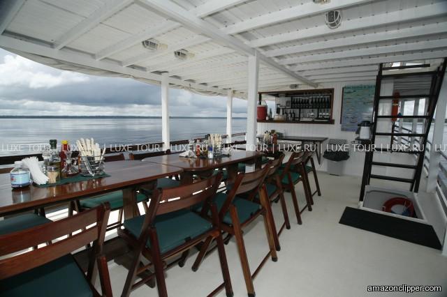 В обеденных залах теплоходов Amazon Clipper Cruises сервирован шведский стол и предложено эклектичное меню местной, бразильской и международной кухонь — с аутентичными блюдами, тропическими фруктами, прохладительными напитками и минеральной водой. Учитываются вегетарианские и диетические требования.