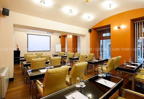 Grand Majestic Plaza Прага — элегантный комфортабельный отель, удобно расположенный в самом центре города, рядом с его многочисленными историческими достопримечательностями. Гостей отеля ждет высокий уровень сервиса и изысканная атмосфера, которая царит здесь во всех помещениях — от стильного фойе с необычным разноцветным фонтаном и отделкой из мрамора до оборудованных новейшей техникой великолепных номеров. Снять стресс и расслабиться можно в отличном СПА центре с сауной, фитнес-залом, джакузи и кабинетами, где предлагаются тайский массаж и косметологические процедуры. Насладиться разнообразием блюд международной кухни можно в уютном ресторане, а приятно отдохнуть — в лобби-баре и на открытой террасе с садом. Для деловых и торжественных встреч в отеле имеются современно оснащенные вместительные конференц-залы.