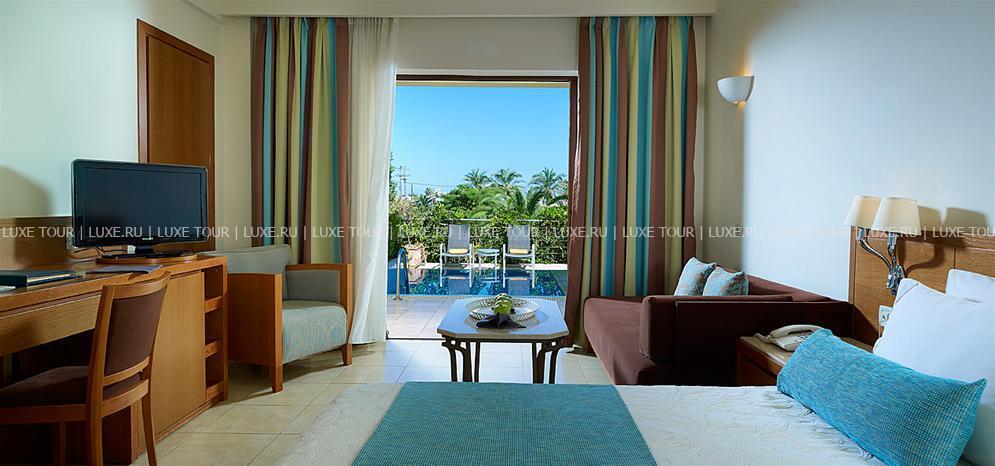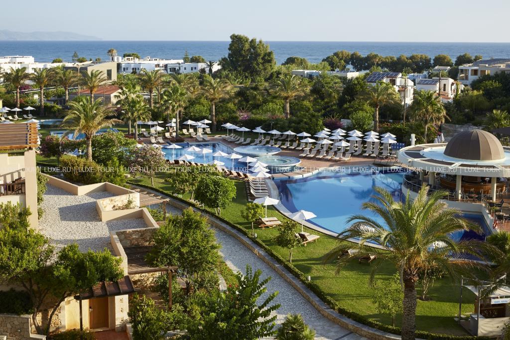 У песчаного пляжа и прозрачных средиземноморских вод, в окружении 35000 м2 ухоженных садов раскинулся комфортабельный комплекс Minoa Palace Resort. Отель впечатляет разнообразием услуг и отличной инфраструктурой. Элегантные, оборудованные современной техникой номера и сьюты, разместились в основном корпусе, новом здании у пляжа и в уютных бунгало, при этом с балконов и террас номеров открываются изумительные виды на море, сады и горы, а часть номеров располагают собственными бассейнами. На территории Minoa Palace Resort имеются прекрасные условия для активного отдыха: пляж с центром водного спорта, бассейны для взрослых и детей, теннисные корты, всевозможные спортивные и развлекательные программы. Для релаксации и оздоровления открыт великолепный спа-центр с крытым бассейном, парными и процедурными кабинетами. Также в Minoa Palace Resort предусмотрены все условия для отдыха с детьми — детские бассейны, игровые площадки и мини-клуб. Восемь ресторанов и баров представляют блюда и напитки на любой вкус, а вместительные и современно оснащенные конференц-залы обеспечивают все условия для деловых мероприятий.