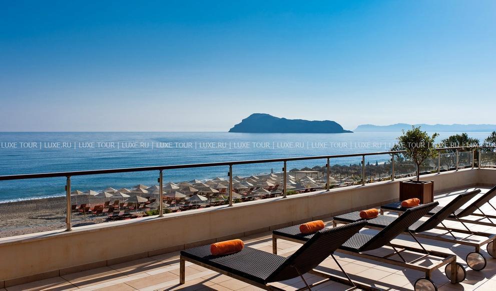 Отель Minoa Palace Resort & Spa располагает собственным песчаным пляжем, куда ведет новый мост, соединяющий здания Minoa Palace Resort & Spa