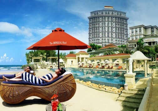 The Imperial Hotel Vung Tau Вьетнам — роскошный отель, расположенный на берегу Южно-Китайского моря, в престижном уголке курорта Вунгтау. Отель, открытый в 2009 году, входит в фешенебельный The Imperial Complex и предлагает аристократический европейский шик, сочетающий сдержанно-элегантный викторианский стиль и изысканное дворцовое великолепие, при этом The Imperial Hotel Vung Tau Вьетнам называют настоящим «бутиком произведений искусства», ведь его стены украшает более 3000 полотен классической европейской живописи, а вся мебель и предметы декора — ручной работы. Здесь созданы условия для отдыха самых взыскательных гостей: шикарное убранство комфортабельных номеров и сьютов, прекрасный СПА центр в греко-римском стиле, прозрачные бассейны, пляжный клуб, рестораны, предлагающие деликатесы западной и азиатской кухни, несколько баров, залы для конференций и банкетов и другие услуги высочайшего уровня.