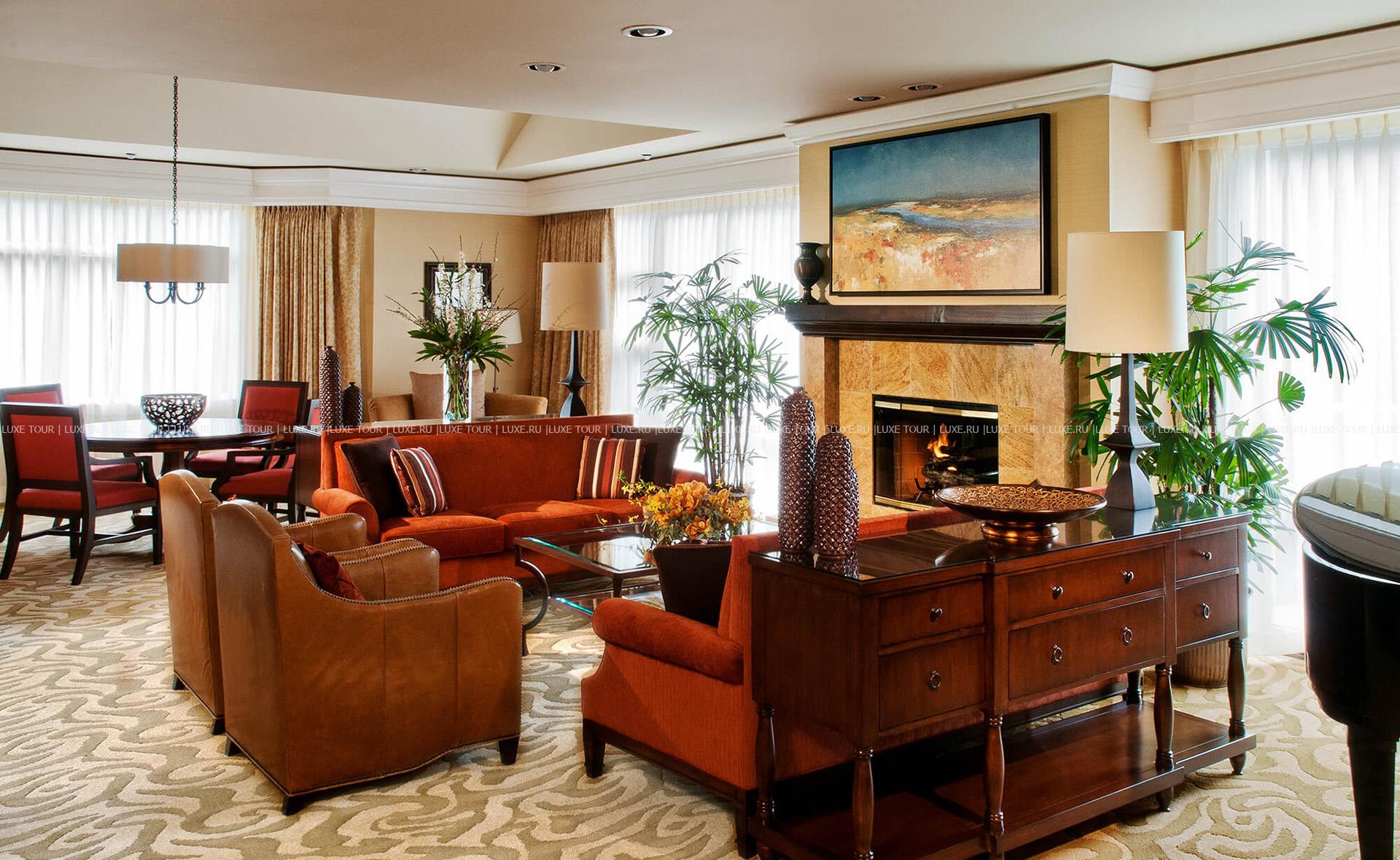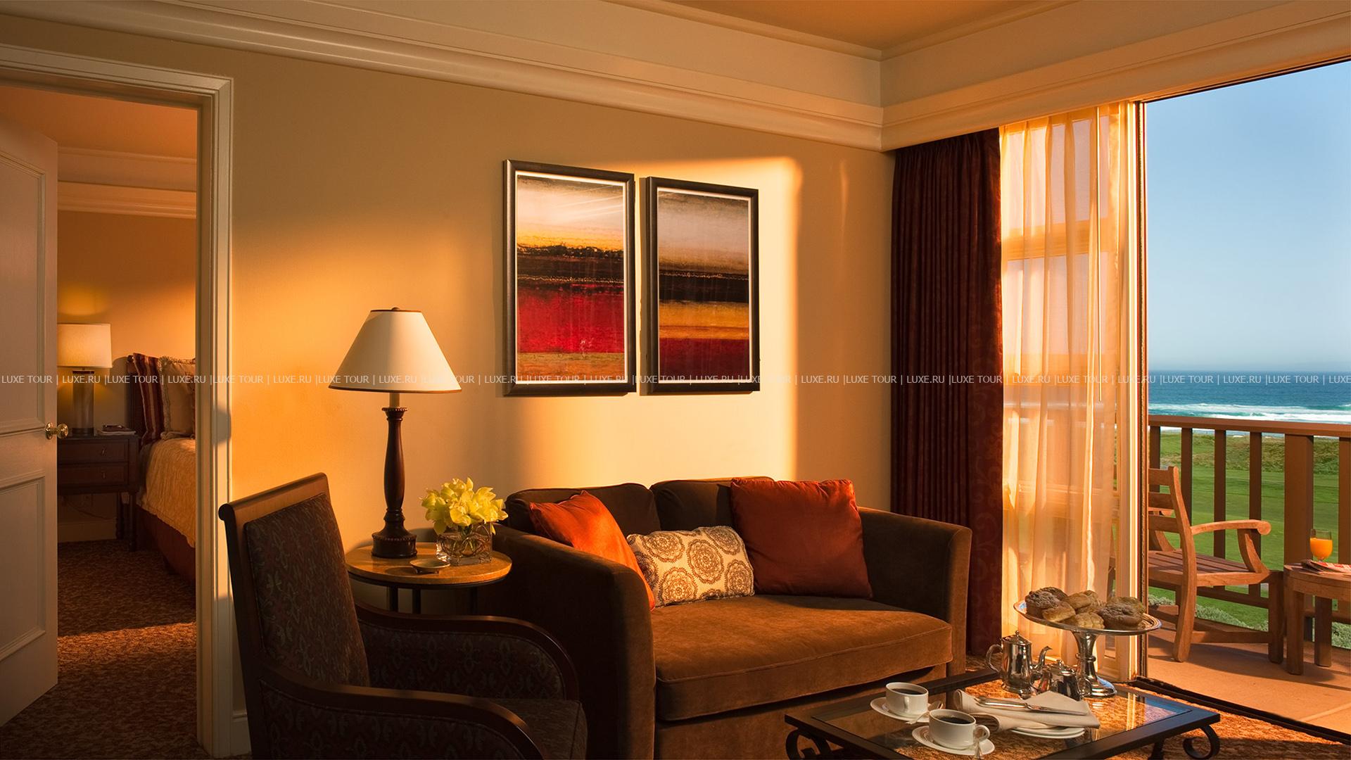 - В лобби-гостиной с открытой террасой и видом на Тихий океан устраивают шоу-программы с «живой» музыкой, подают закуски, крепкие напитки и коктейли. По вечерам отсюда можно увидеть волынщика в традиционном шотландском килте, играющего в честь заходящего солнца.