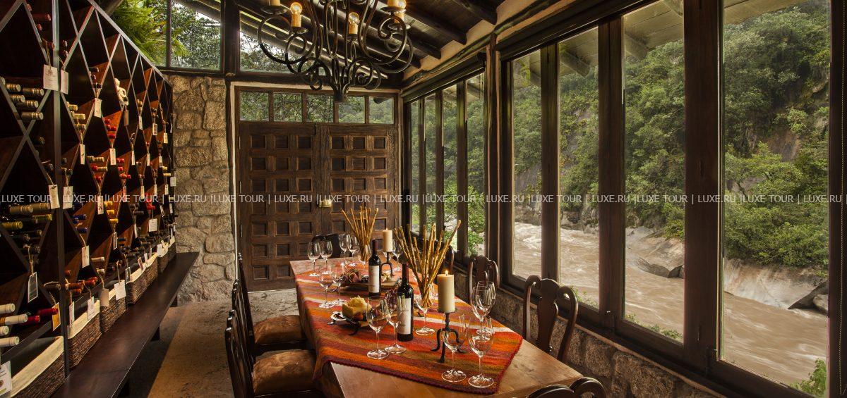 - Dining room and bar были построены как большой стеклянный дом с исключительным видом на реку Вильканота и прилегающие зелёные горы.